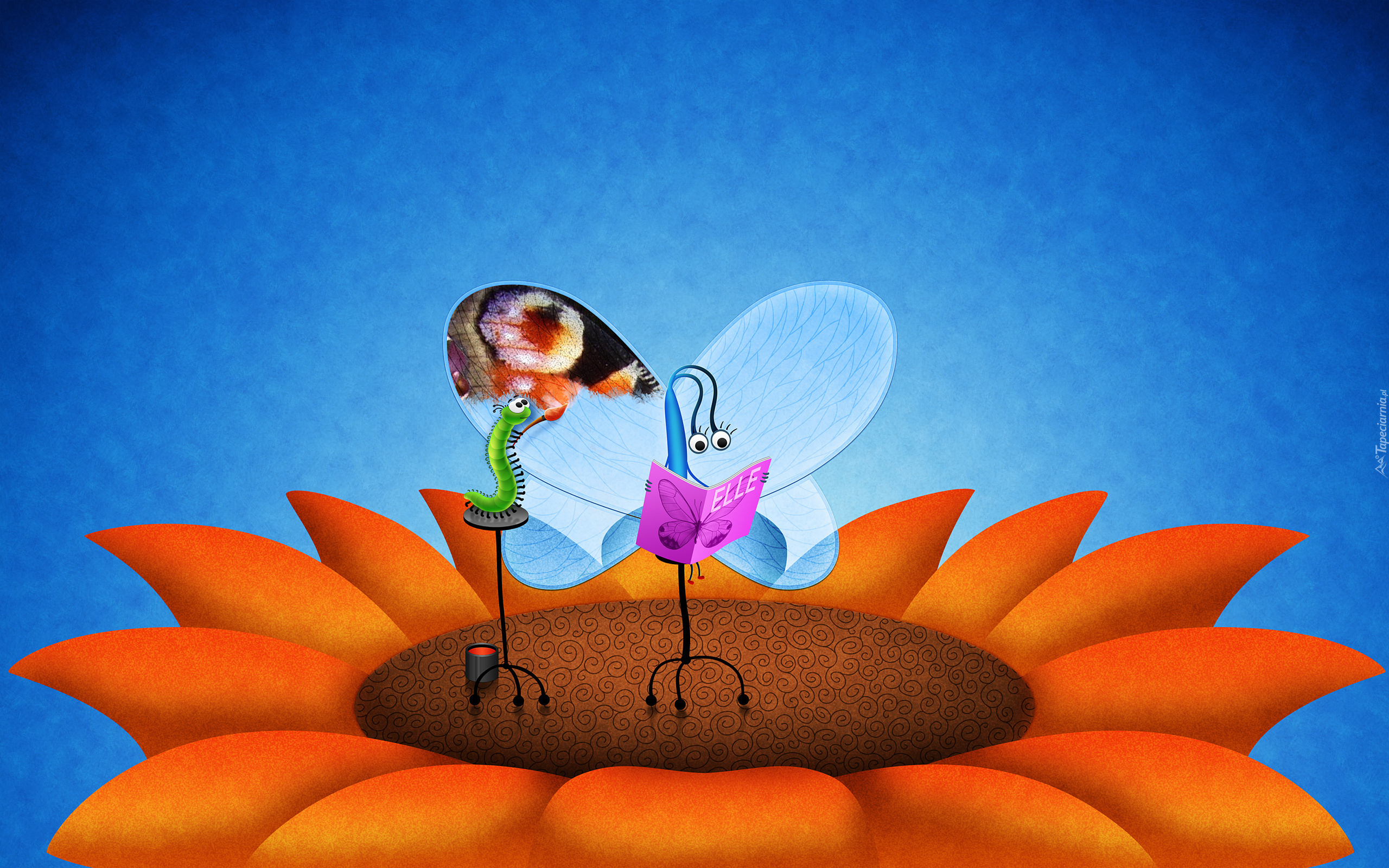 Edytor tapety: Kwiat, Motyl, Gąsienica