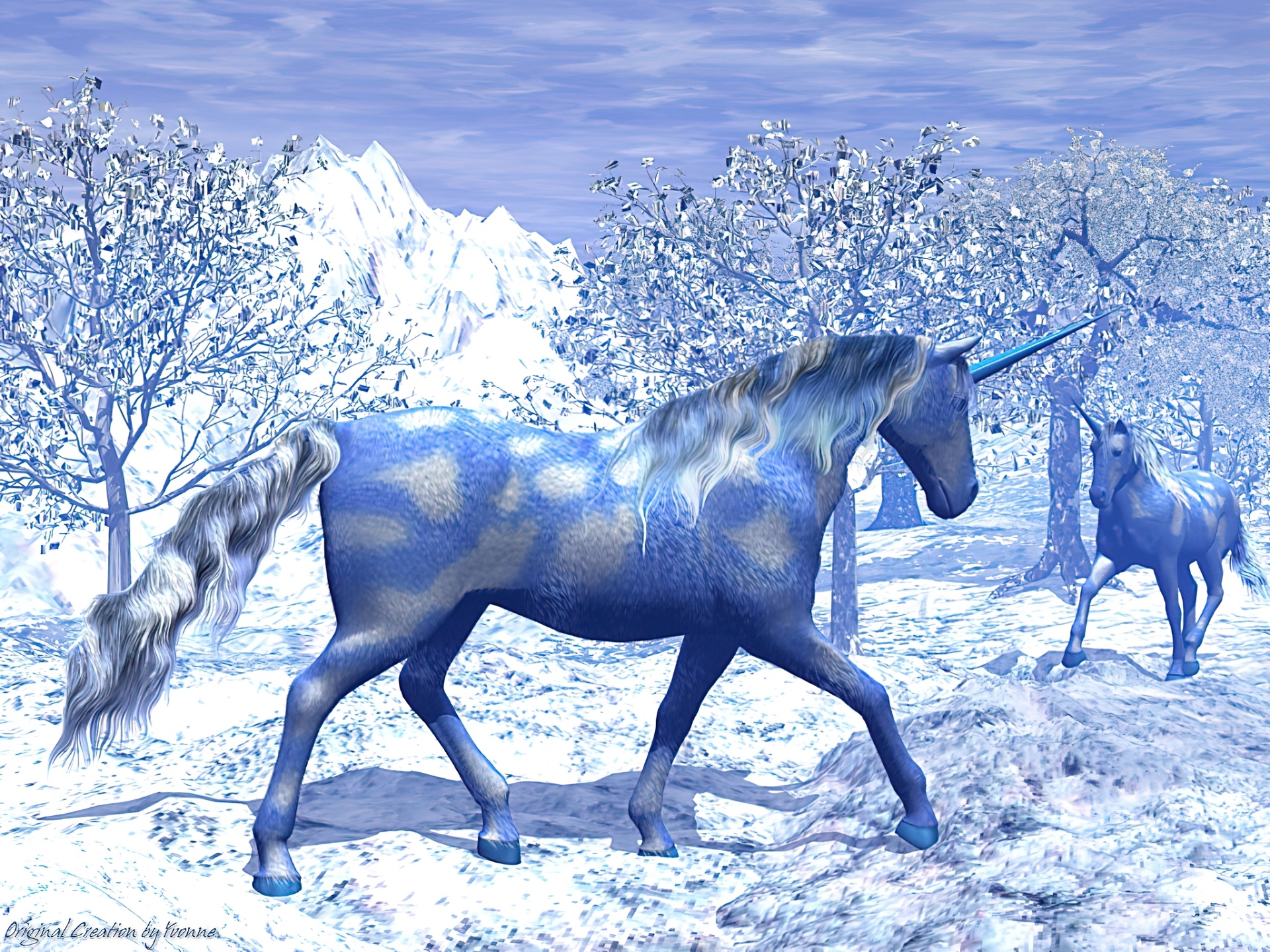 Edytor tapety: Dwa, Jednorożce, Fantasy, Yvonne Medin