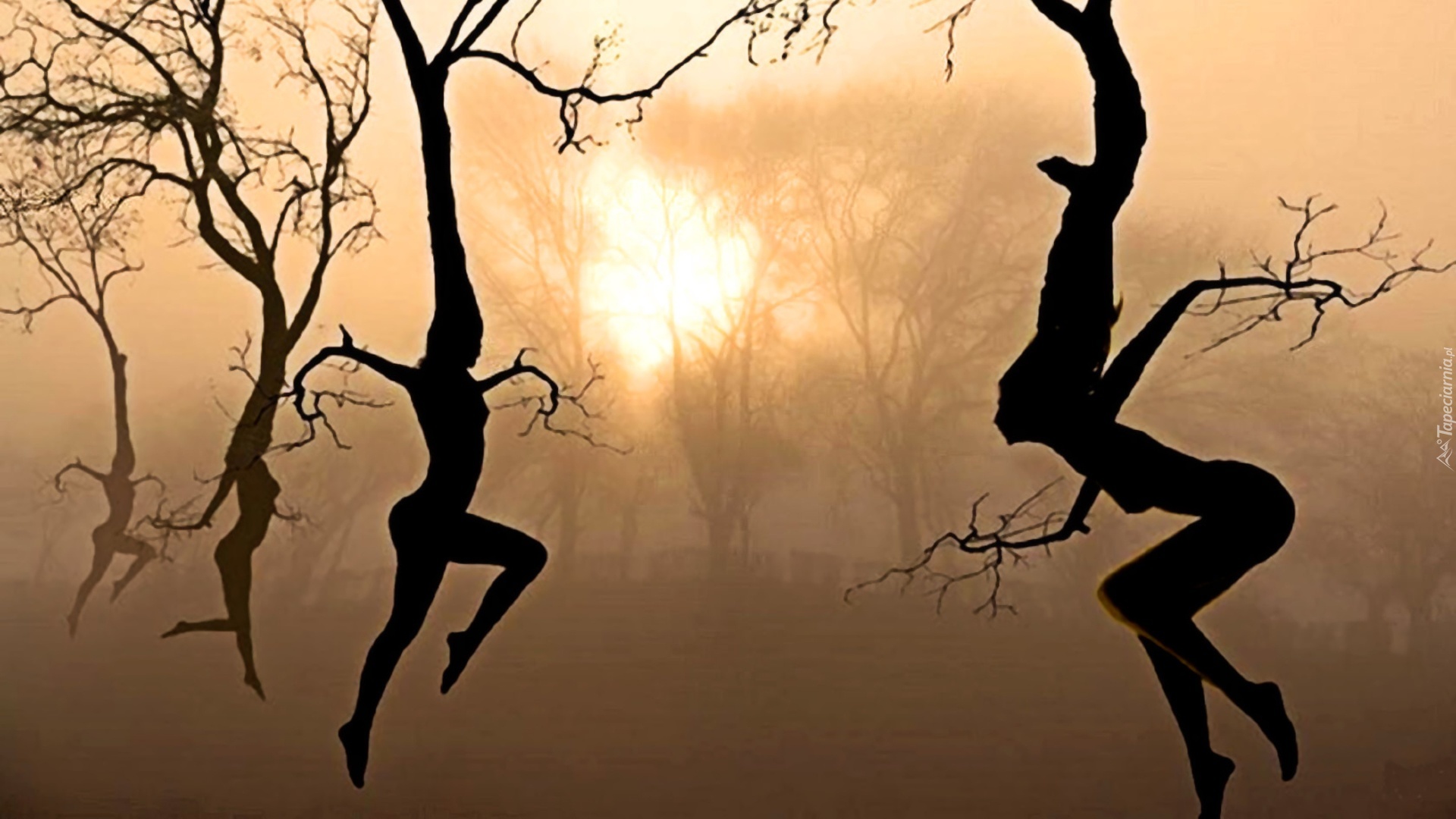 Edytor tapety: Zachód, Słońca, Kobiety, Drzewa