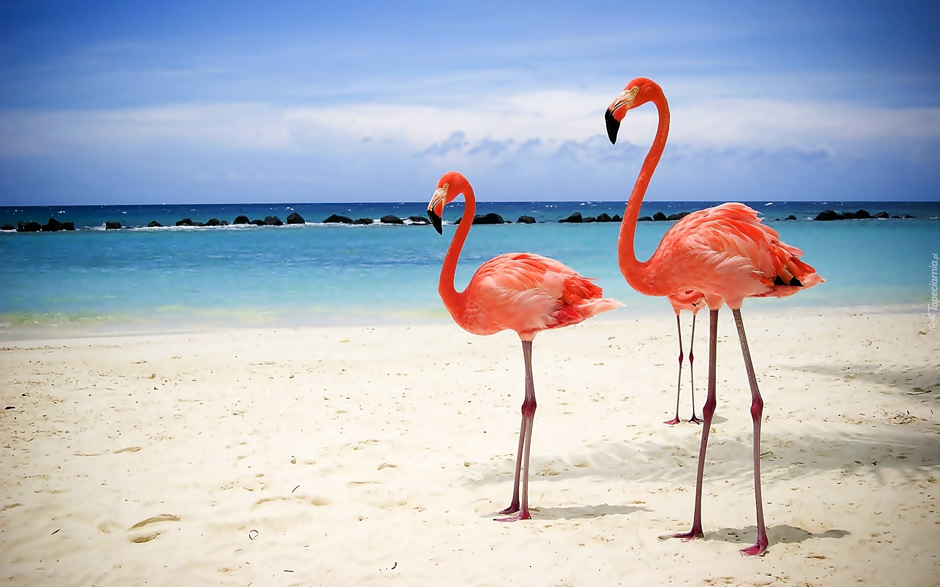 Edytor tapety: Plaża, Morze, Niebo, Flamingi