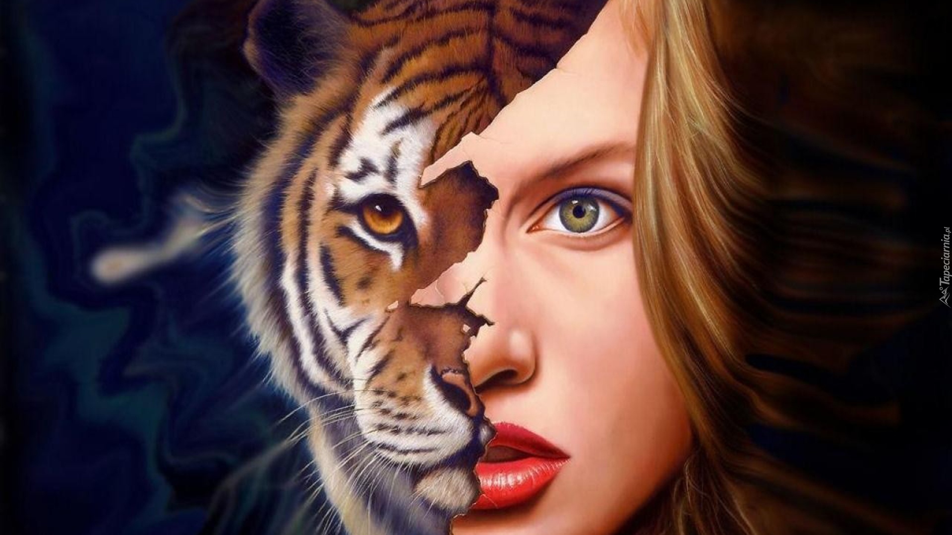 Edytor tapety: Twarz, Kobiety, Tygrysa