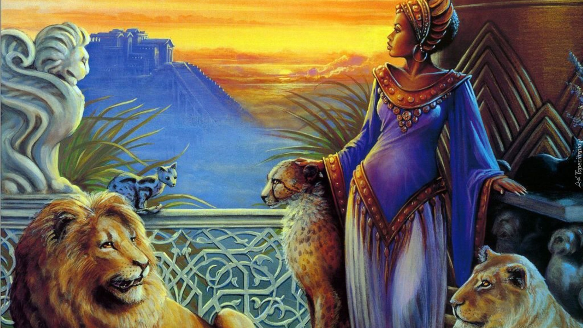 Edytor tapety: Kobieta, Lew, Zwierzęta, Zachód, Słońca