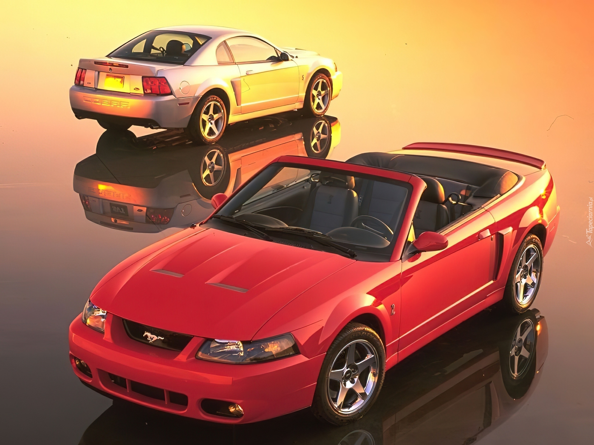Edytor tapety: Mustang, Czerwony, Cabrio, Srebrny