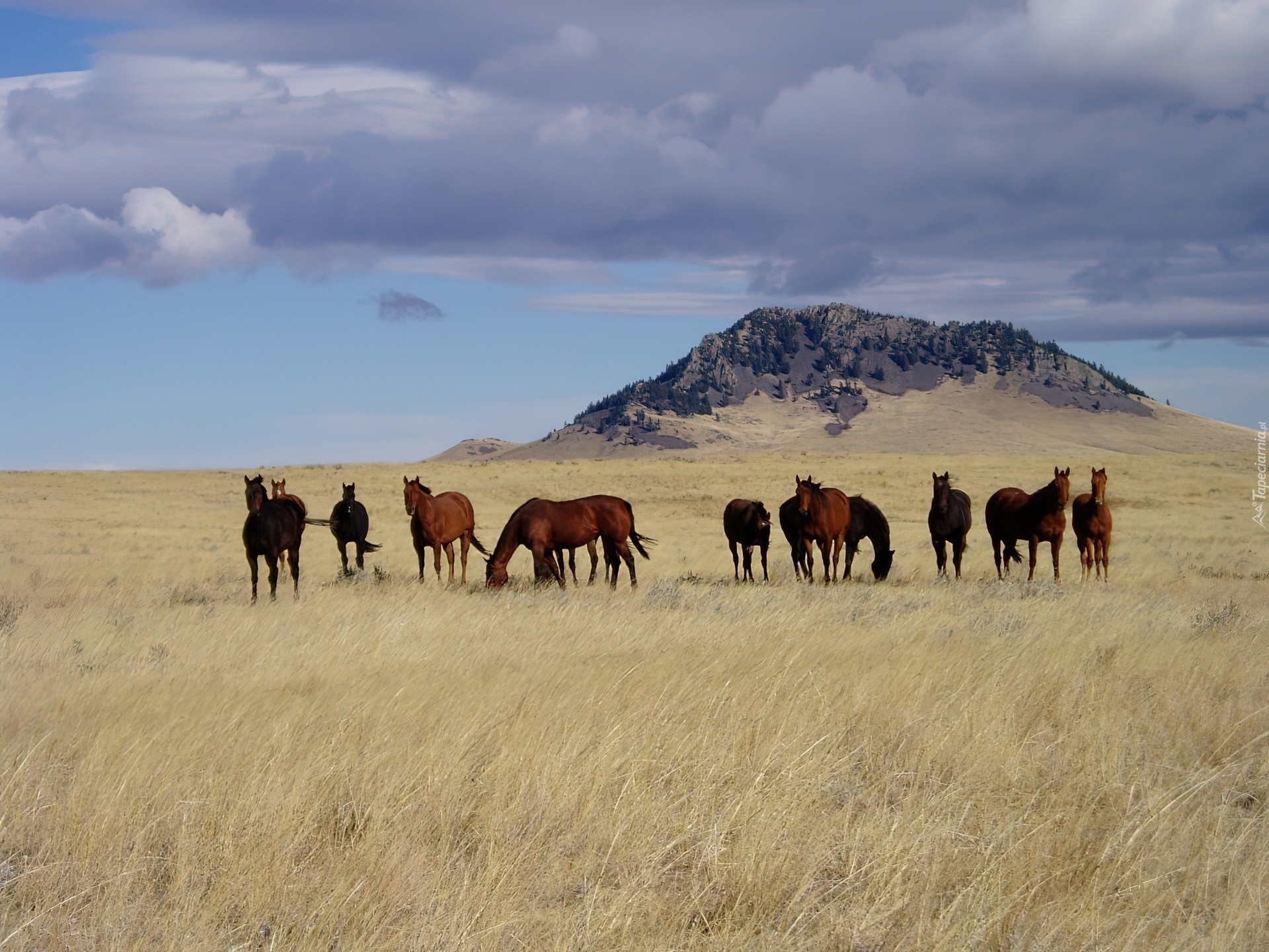 Edytor tapety: Konie, Chmury, Niebo, Góra