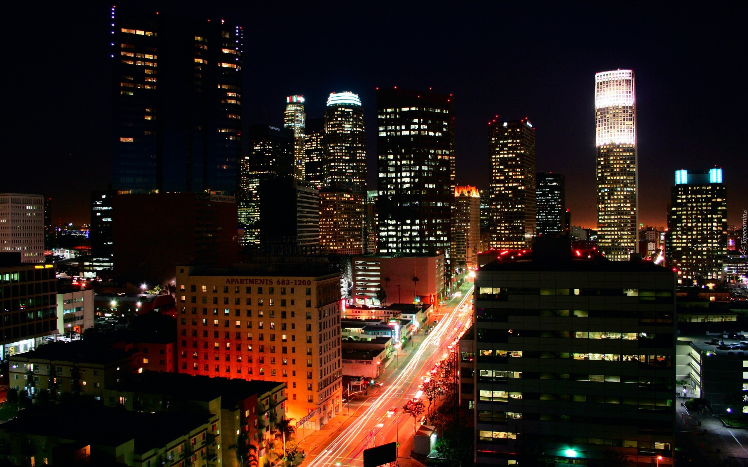 Edytor tapety: Oświetlone, Miasto, Nocą, Drapacze, Chmur