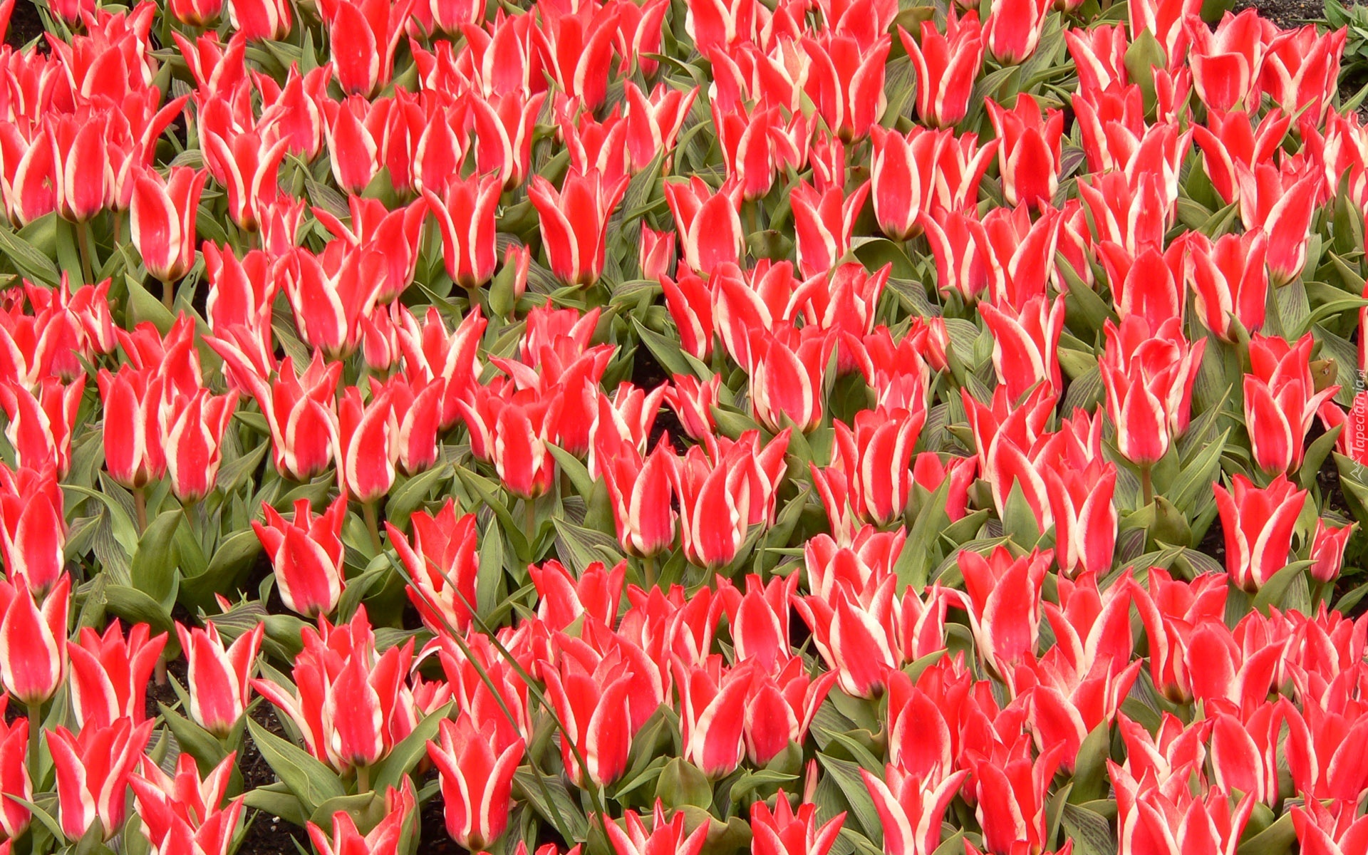 Edytor tapety: Plantacja, Czerwono, Białych, Ozdobnych, Tulipanów