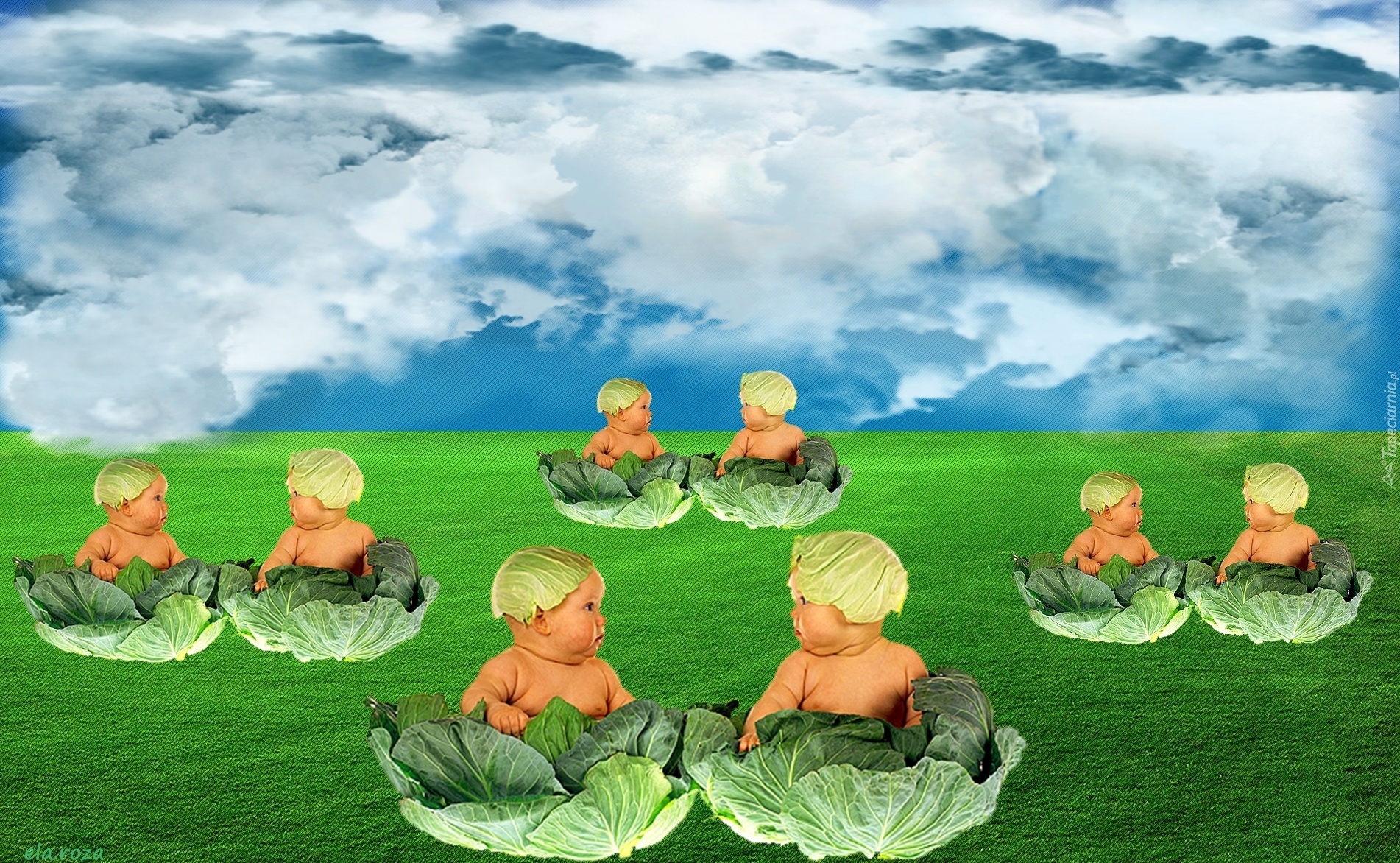 Edytor tapety: Pole, Dzieci, Kapusta
