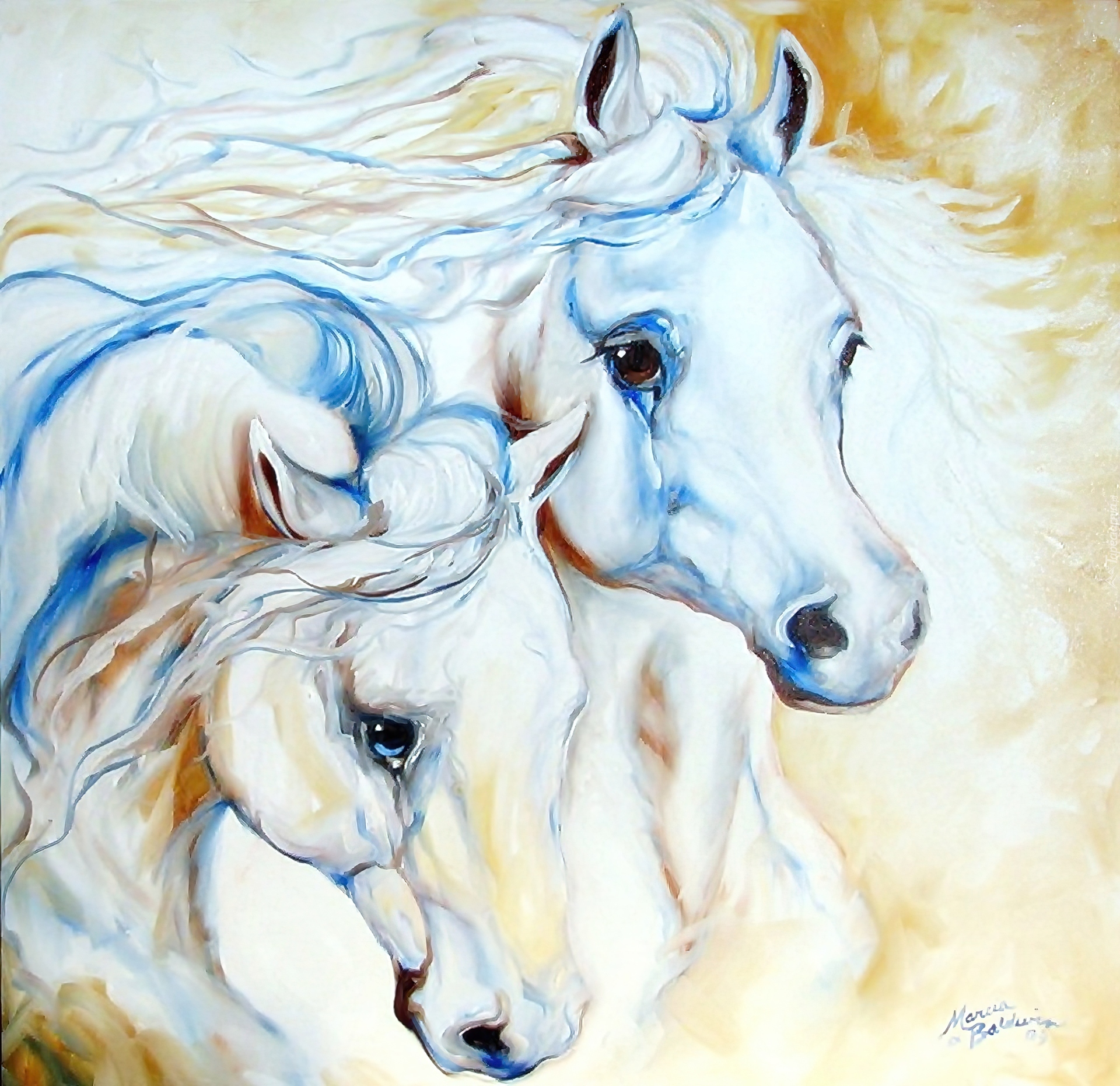Edytor tapety: Dwa, Konie, Reprodukcja, Obrazu, Marcia Baldwin