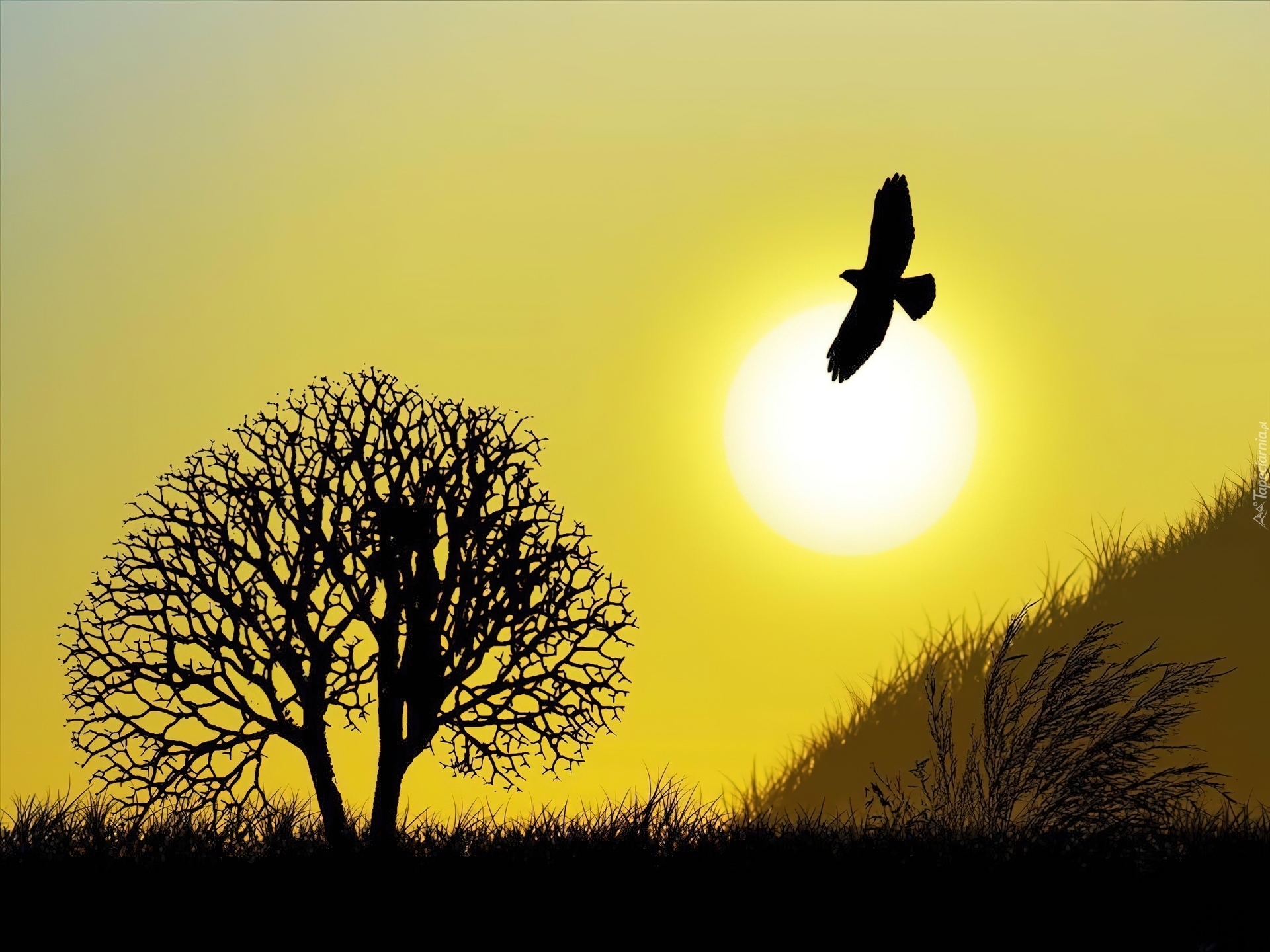 Edytor tapety: Wieczór, Drzewo, Ptak