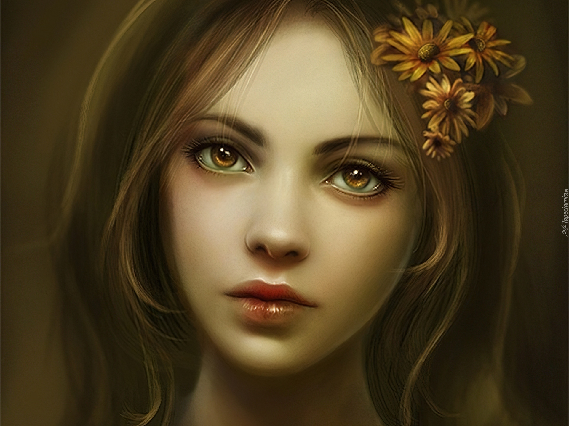 Edytor tapety: Dziewczyna, Kwiaty, Brązowe, Oczy