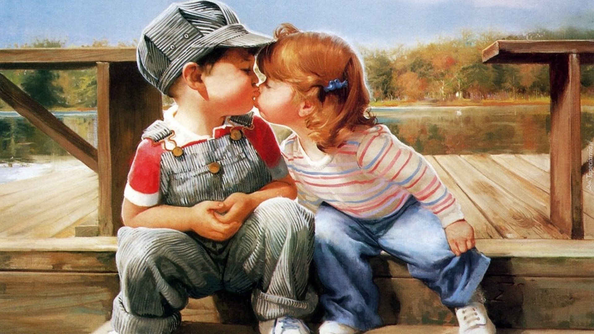 Edytor tapety: Dziewczynka, Chłopiec, Pierwszy, Pocałunek
