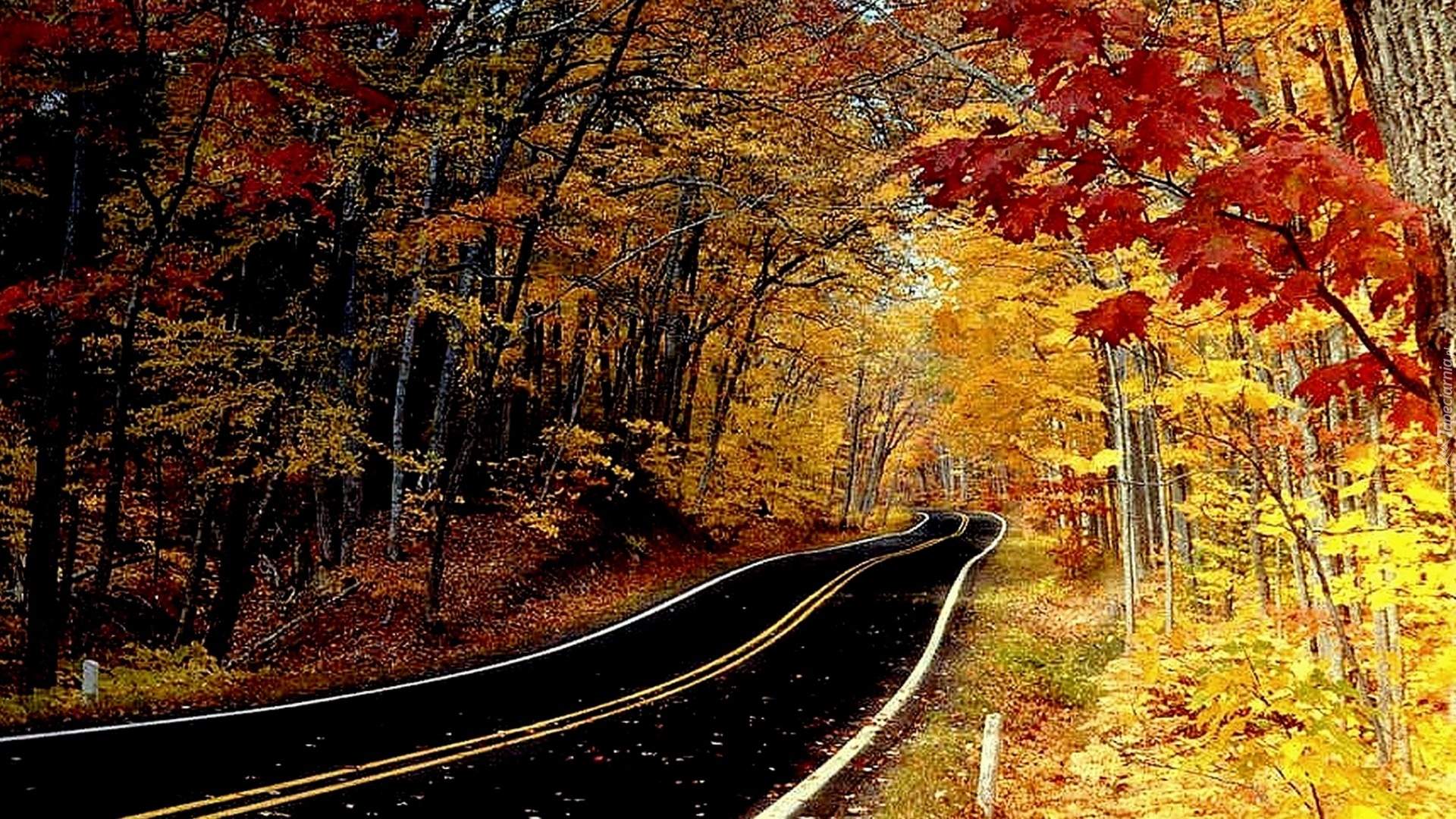 Edytor tapety: Jesień, Kolorowe, Liście, Droga