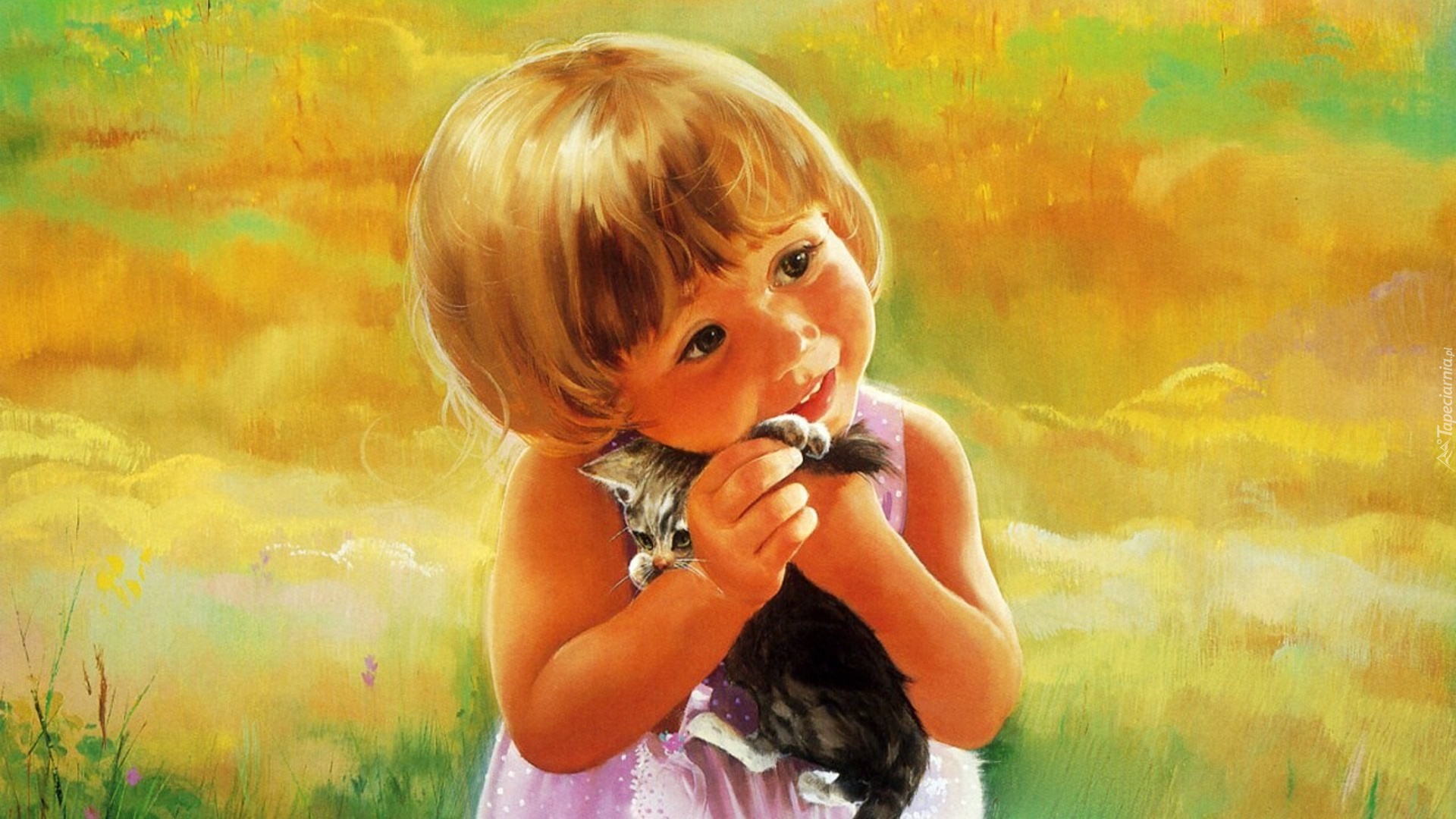 Edytor tapety: Dziewczynka, Mały, Kotek