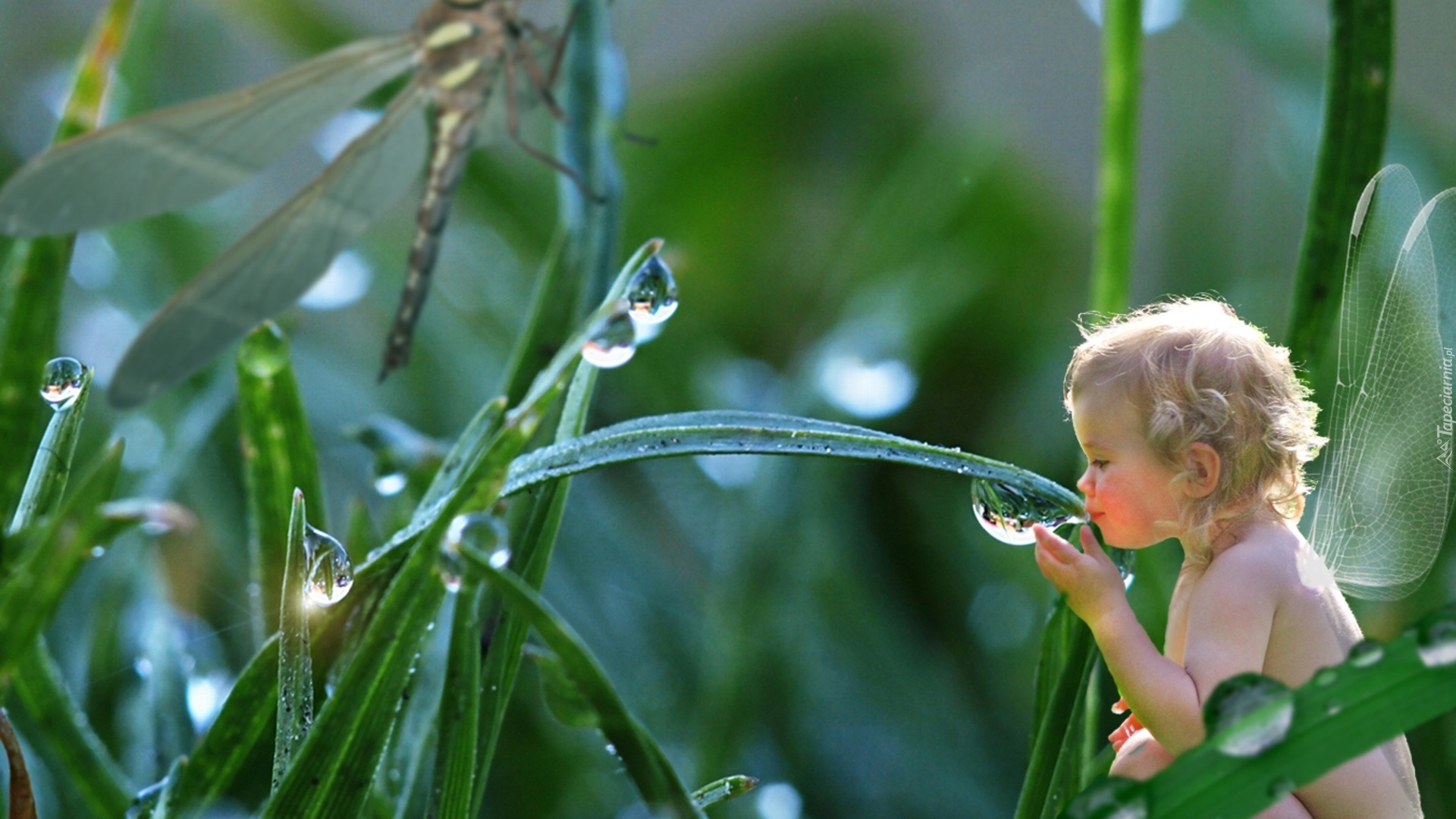 Edytor tapety: Dziecko, Motylek, Trawa, Rosa