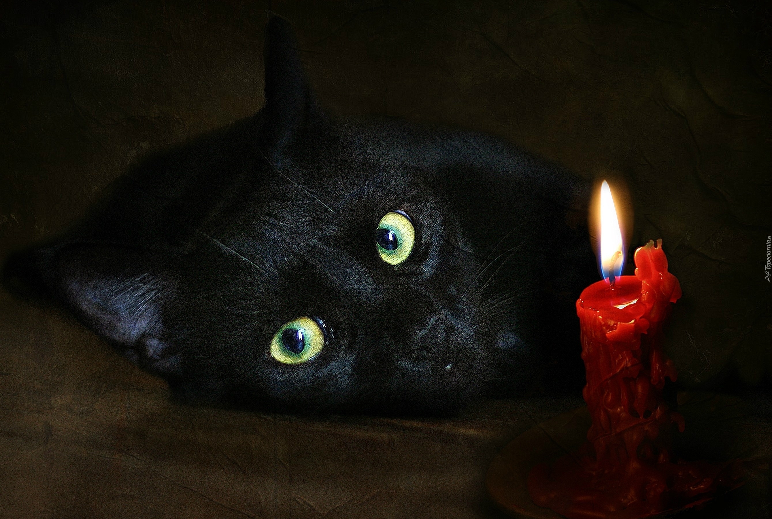Edytor tapety: Czarny, Kot, Świeca, Zielone, Oczy