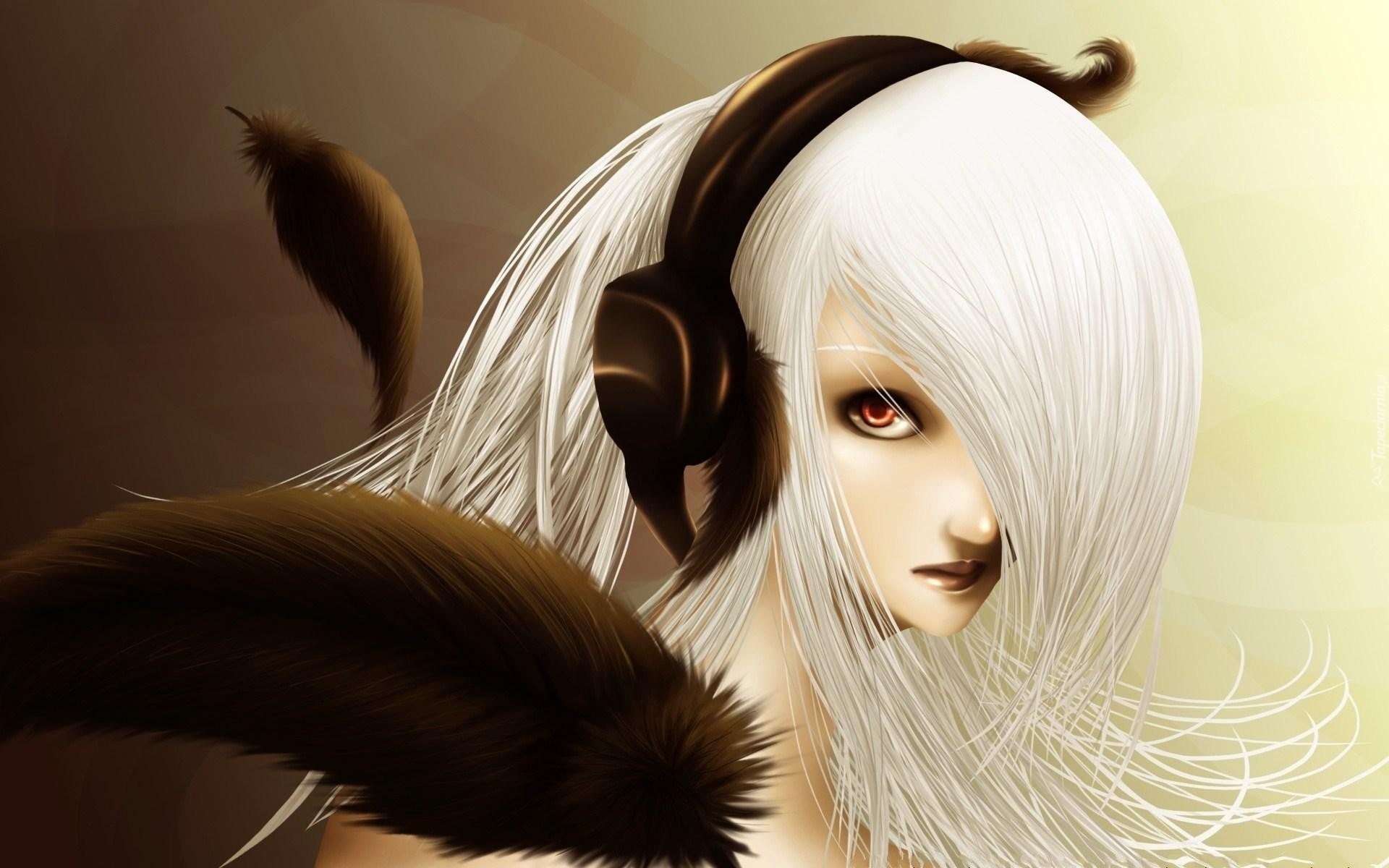 Edytor tapety: Dziewczyna, Białe, Włosy, Słuchawki