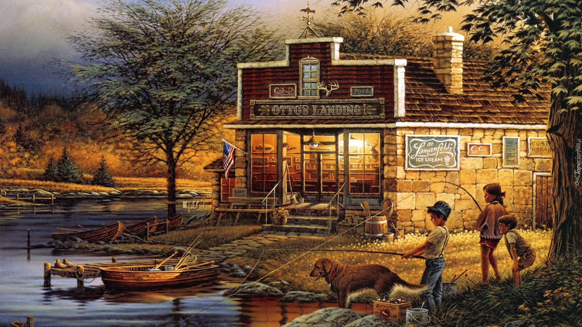 Edytor tapety: Jezioro, Dzieci, Dom, Wędkowanie