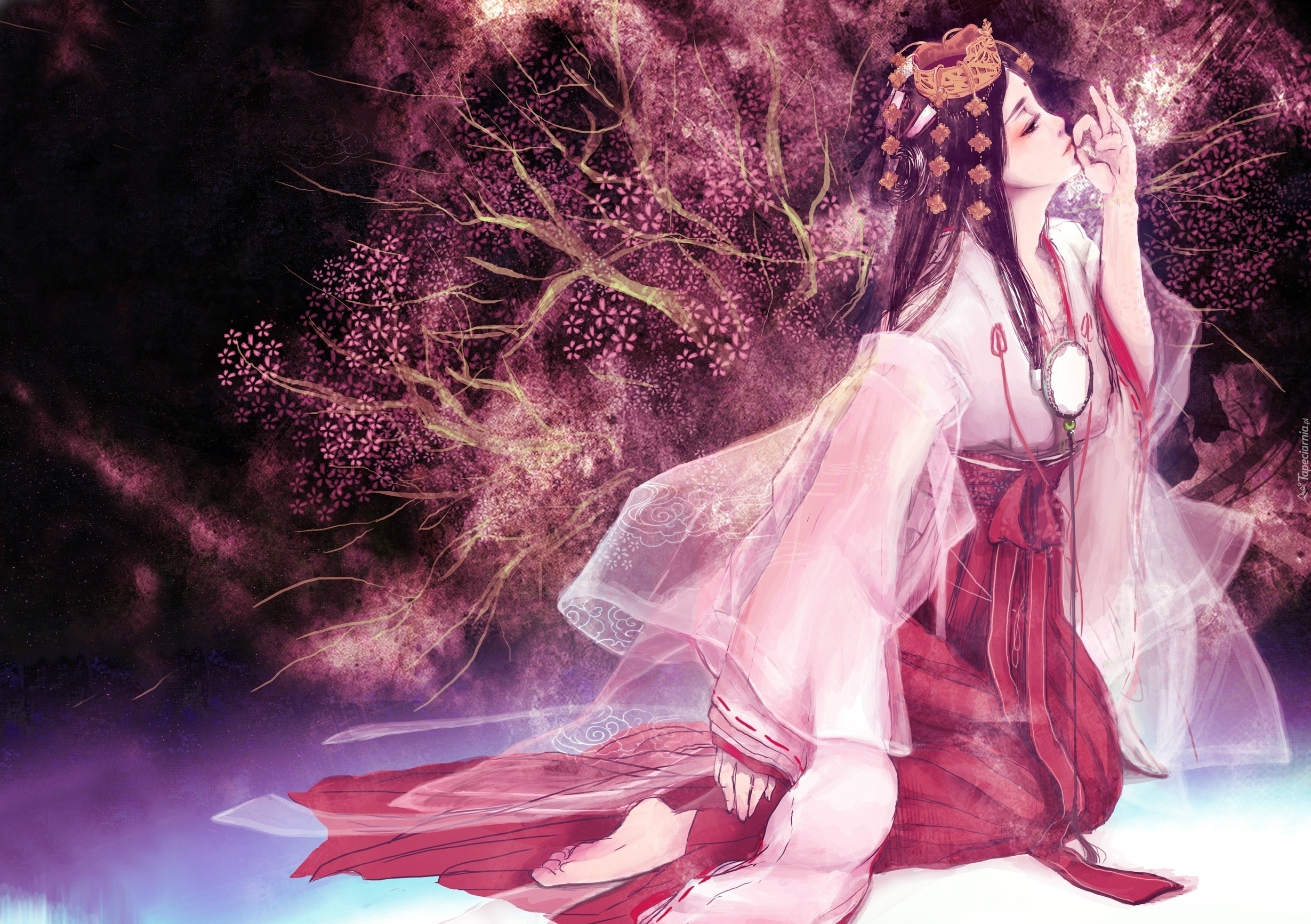 Edytor tapety: Kobieta, Ręka, Kwitnące, Drzewo