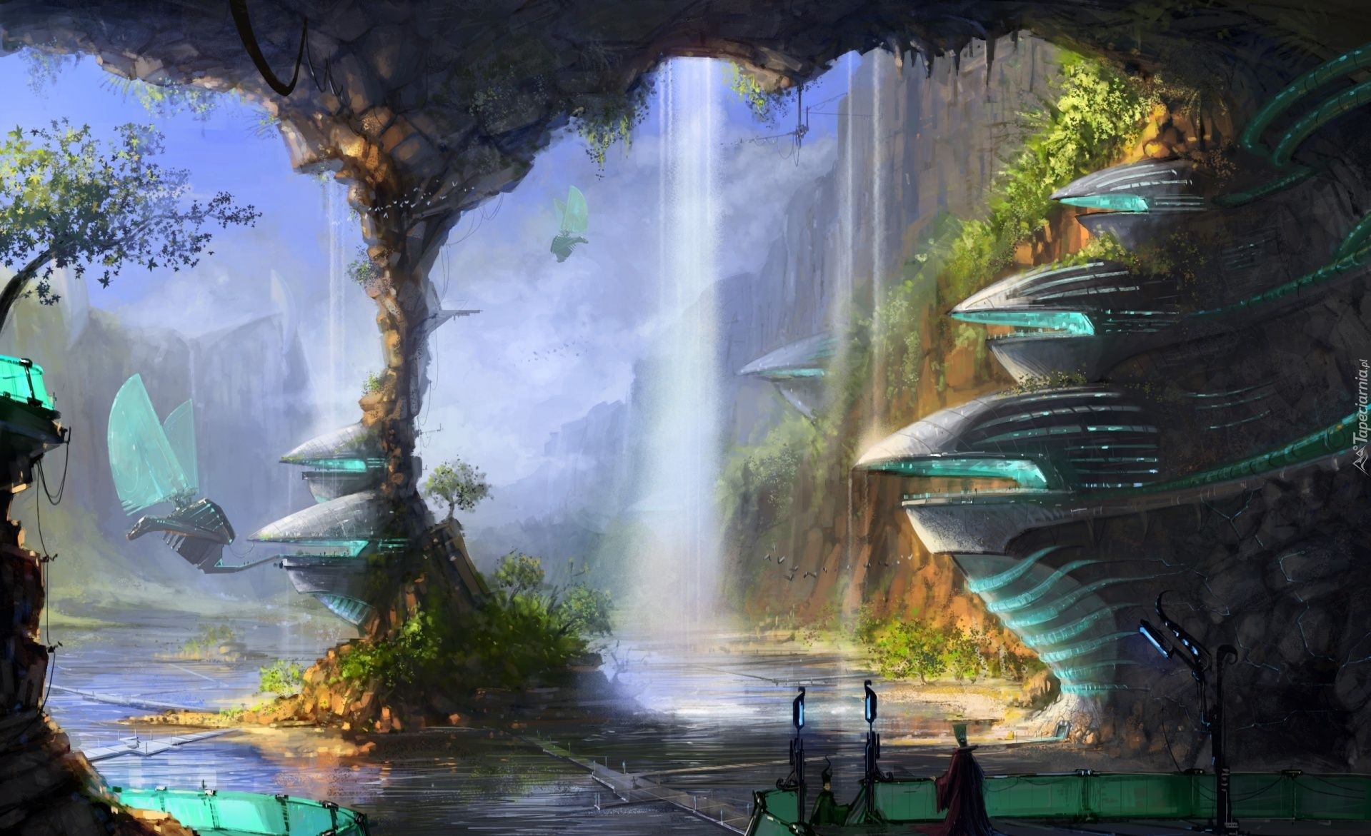 Edytor tapety: Kraina, Statki, Wodospad
