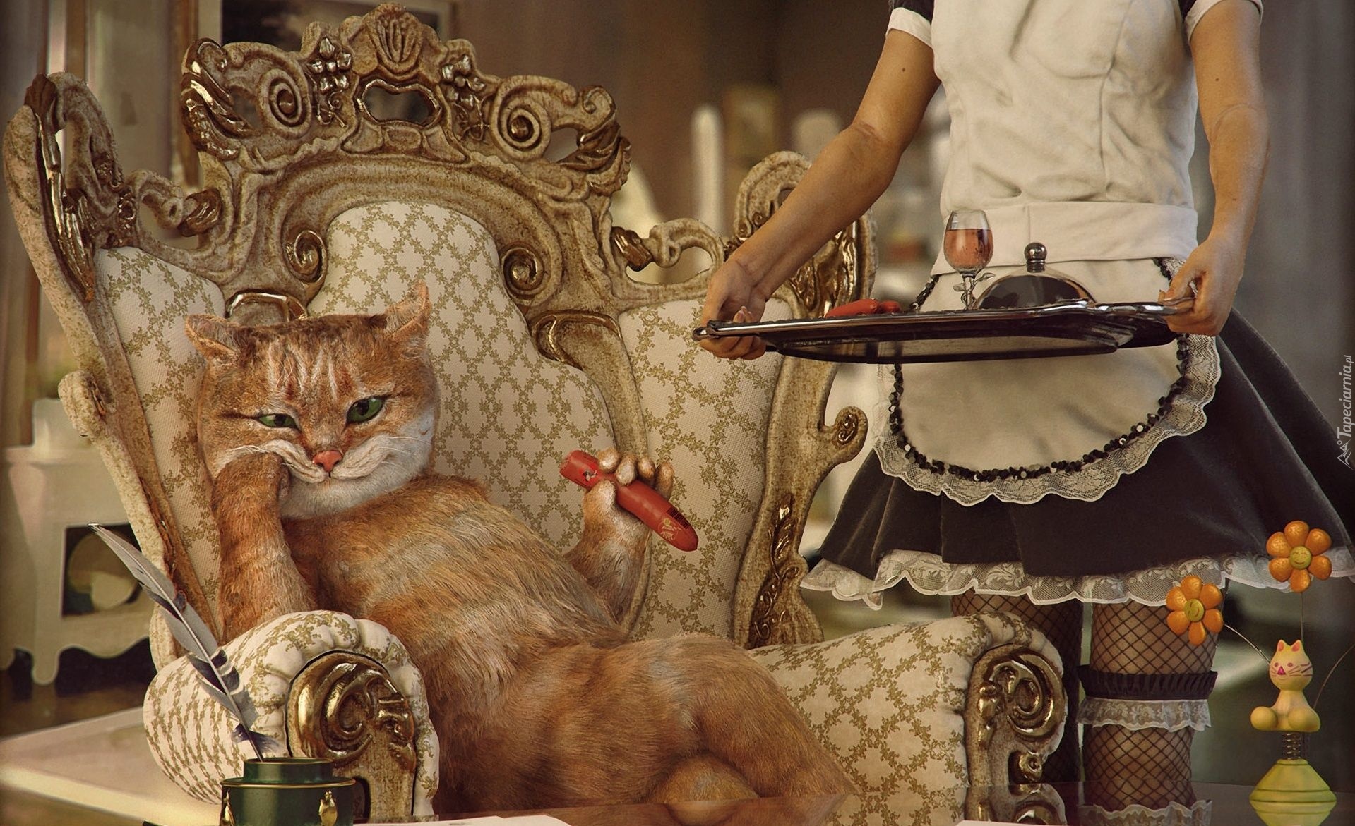 Edytor tapety: Kot, Luksus, Pokojówka