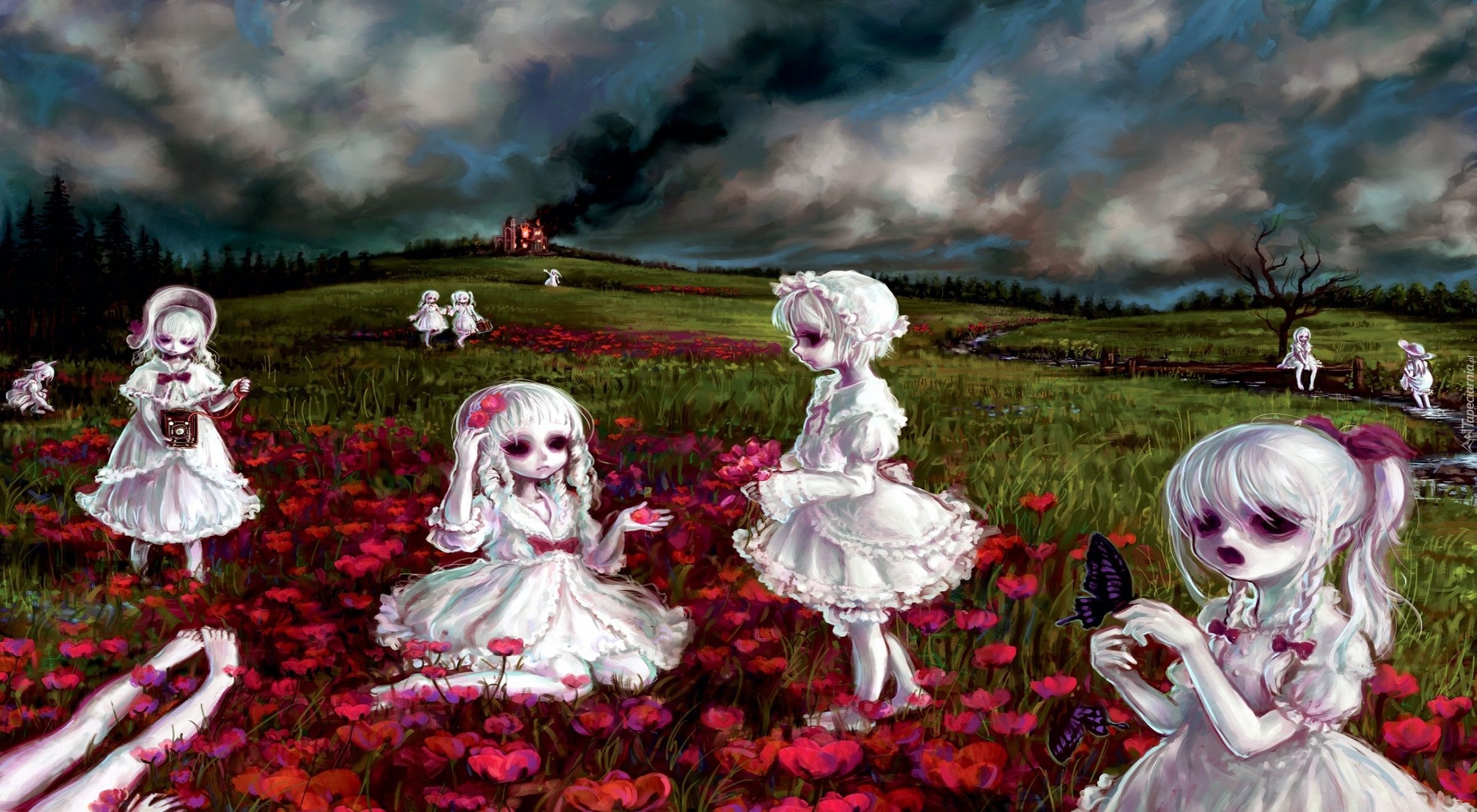 Edytor tapety: Dziewczynki, Bez, Oczu, Łąka, Kwiaty