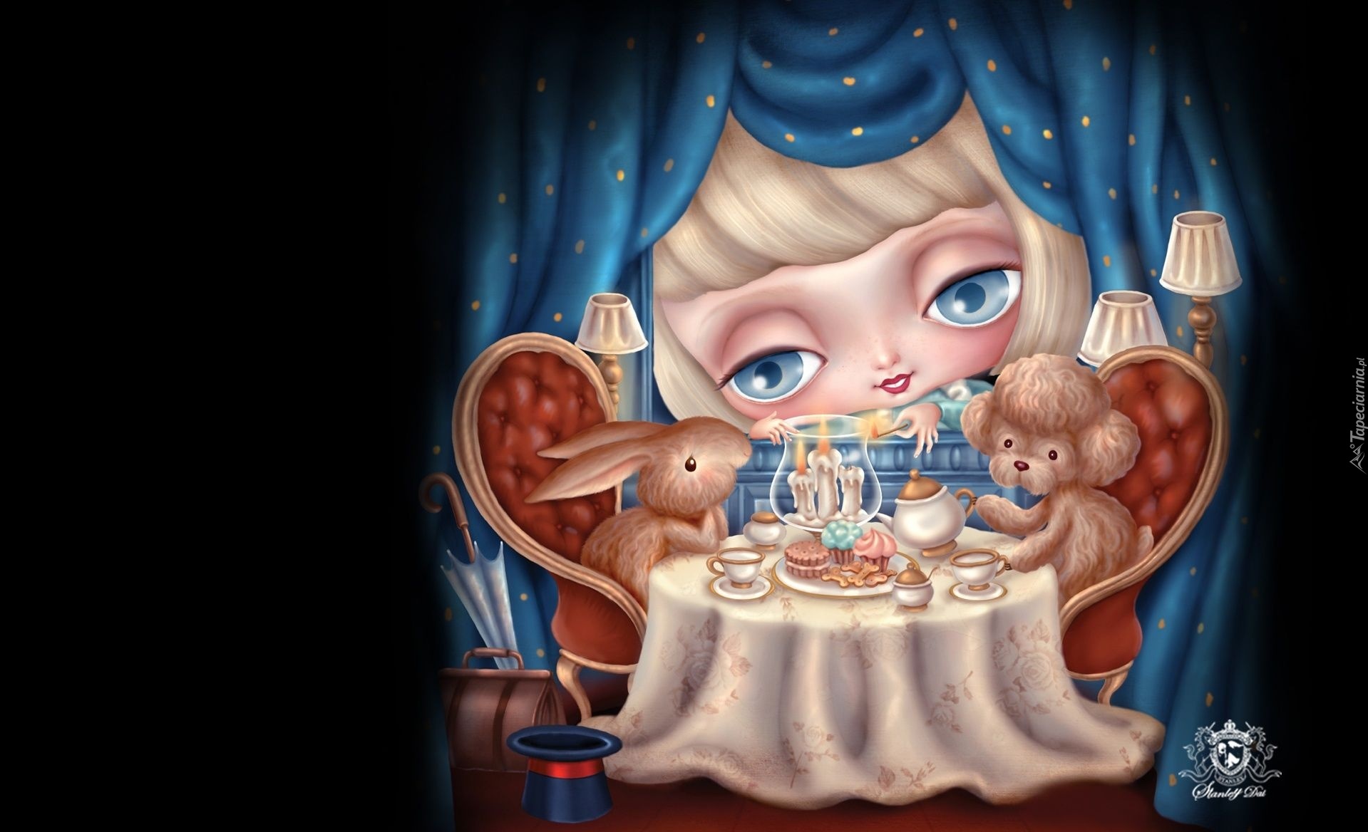 Edytor tapety: Dziewczynka, Króliczki, Obiad