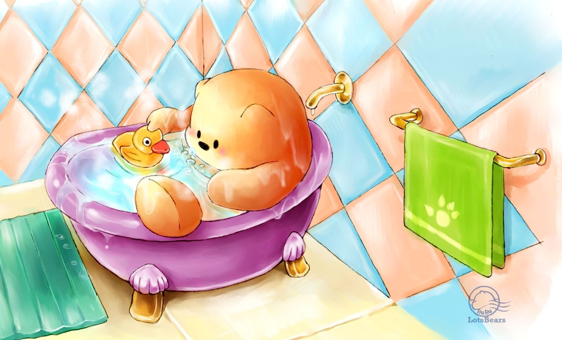 Edytor tapety: Misiek, Gumowa, Kaczka, Kąpiel
