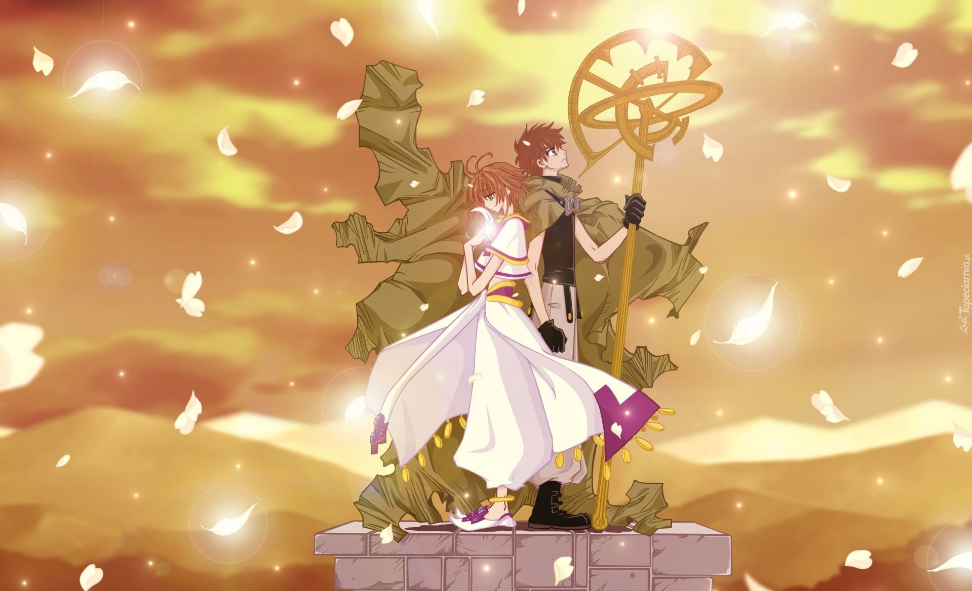 Edytor tapety: Sakura, Shaoran, Płatki, Kwiatów