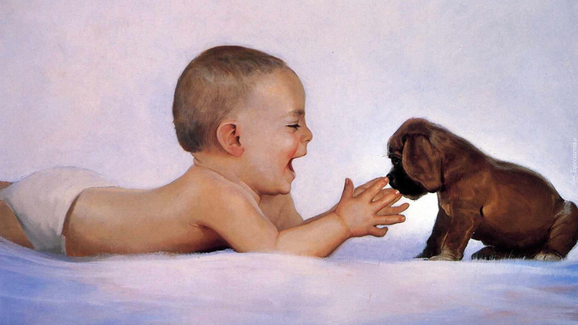 Edytor tapety: Niemowlę, Szczeniaczek, Przyjaciele