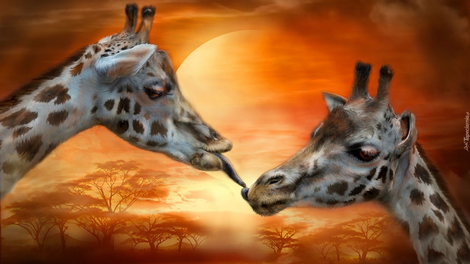 Edytor tapety: Dwie, Żyrafy, Pocałunek