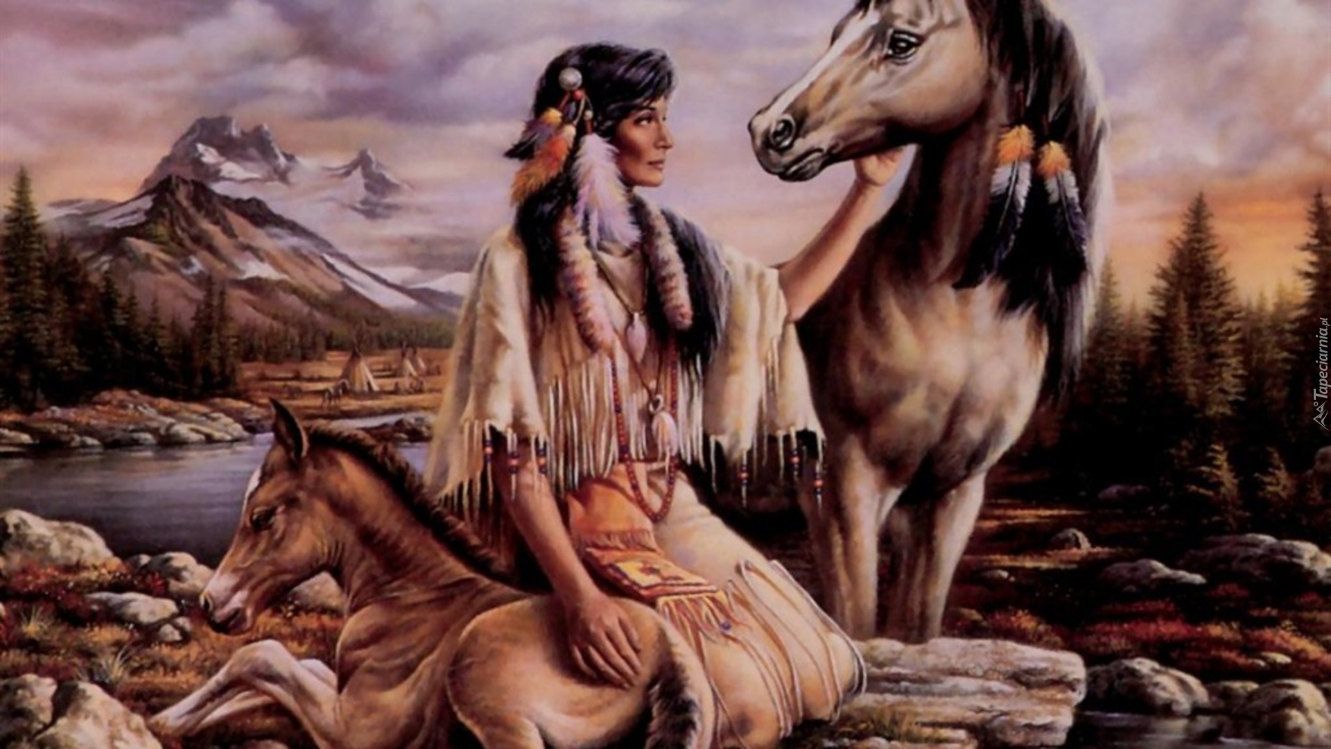 Edytor tapety: Kobieta, Indianka, Konie