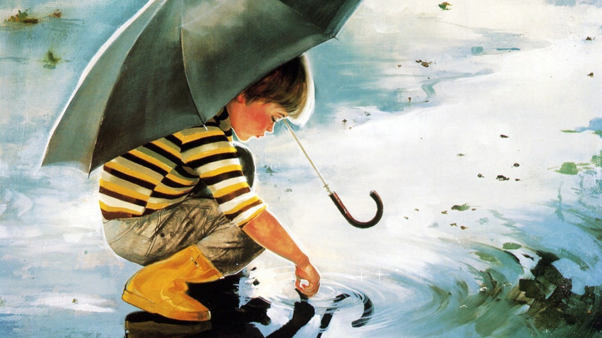 Edytor tapety: Chłopczyk, Parasol, Kałuża