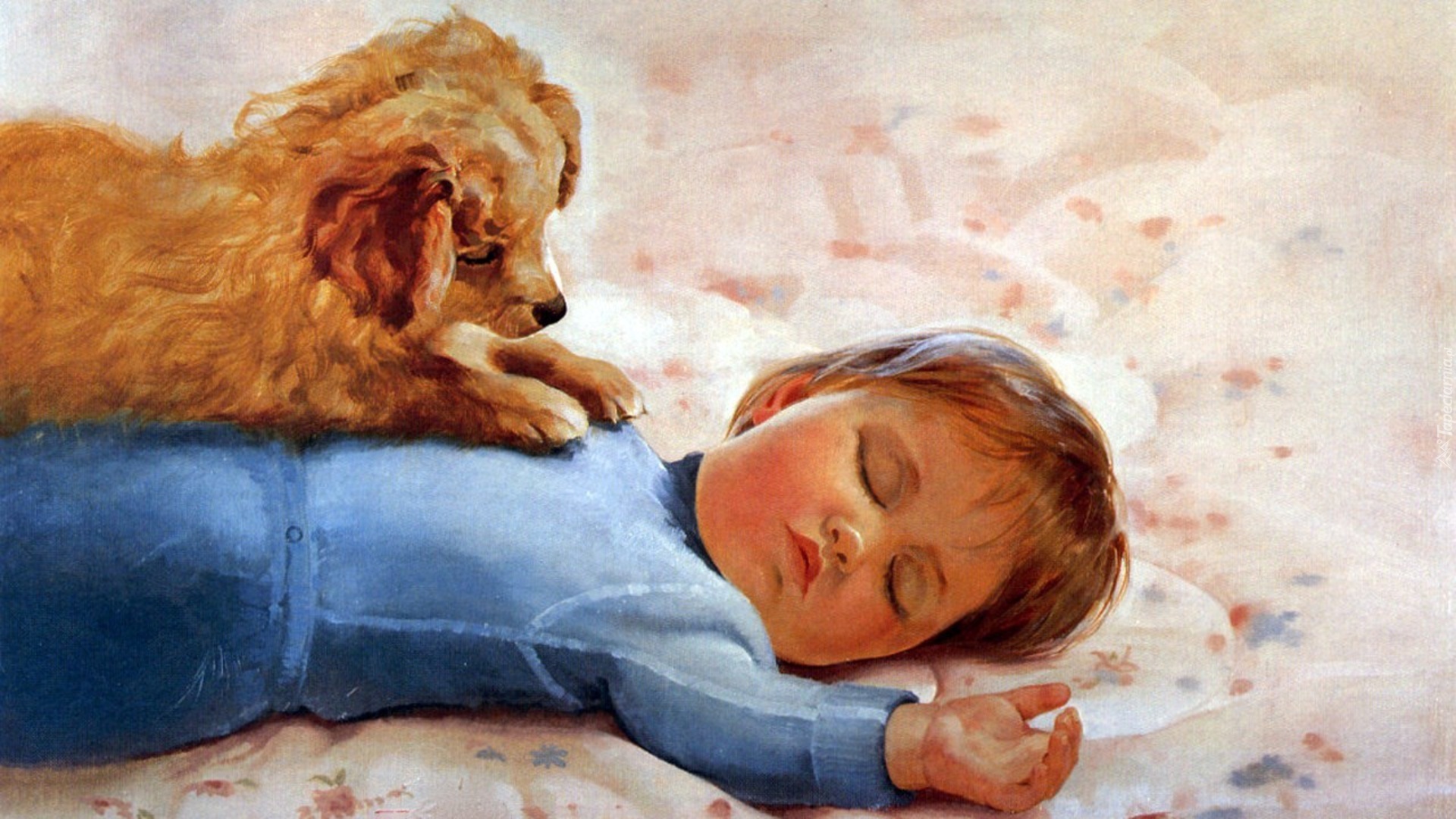 Edytor tapety: Śpiące, Dziecko, Pies