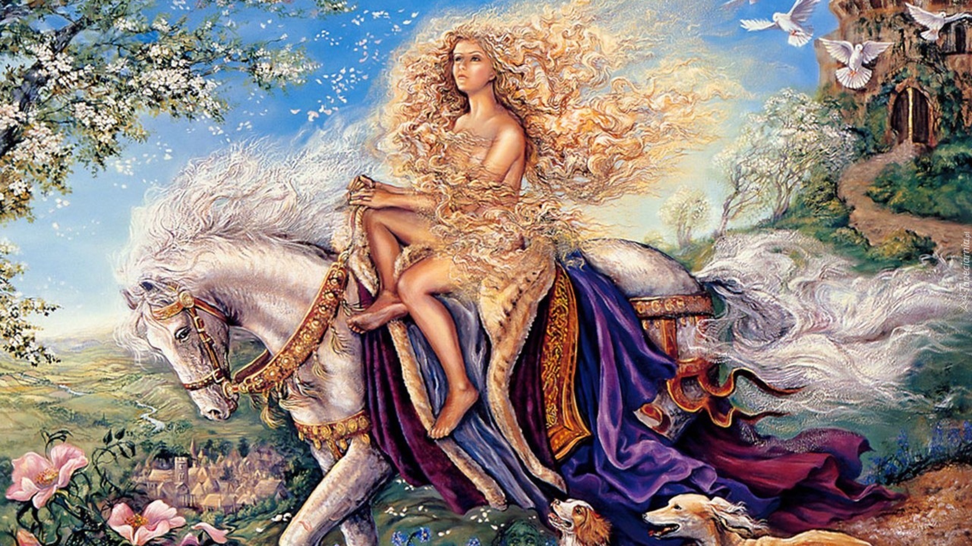 Edytor tapety: Kobieta, Koń, Ptaki, Drzewa