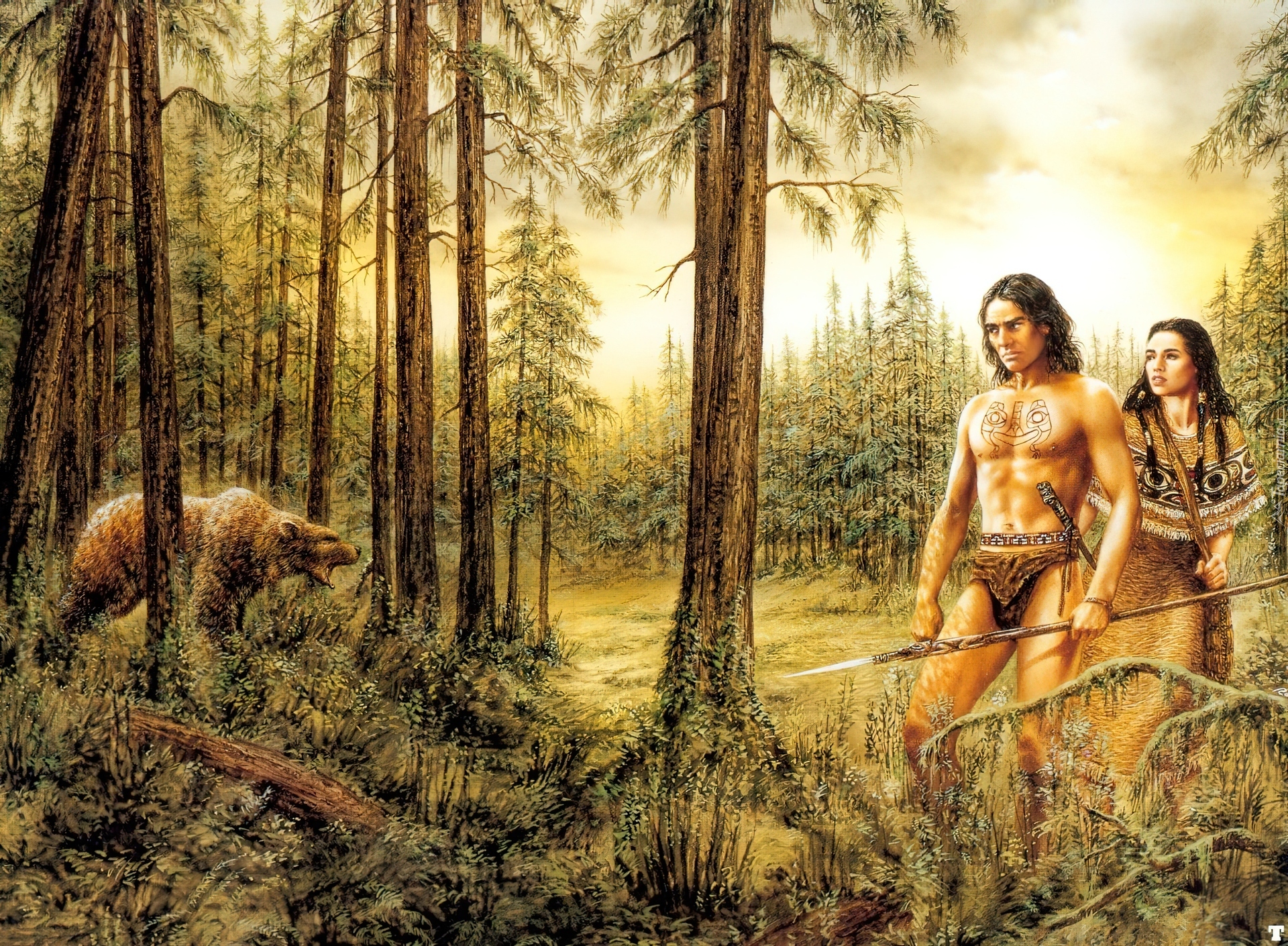 Edytor tapety: Kobieta, Mężczyzna, Niedźwiedź, Las