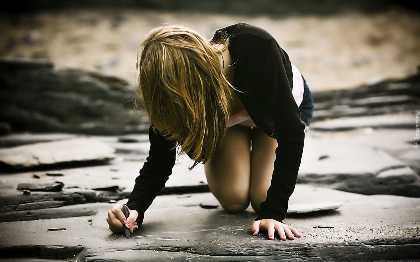Edytor tapety: Kobieta, Rysunek, Skała