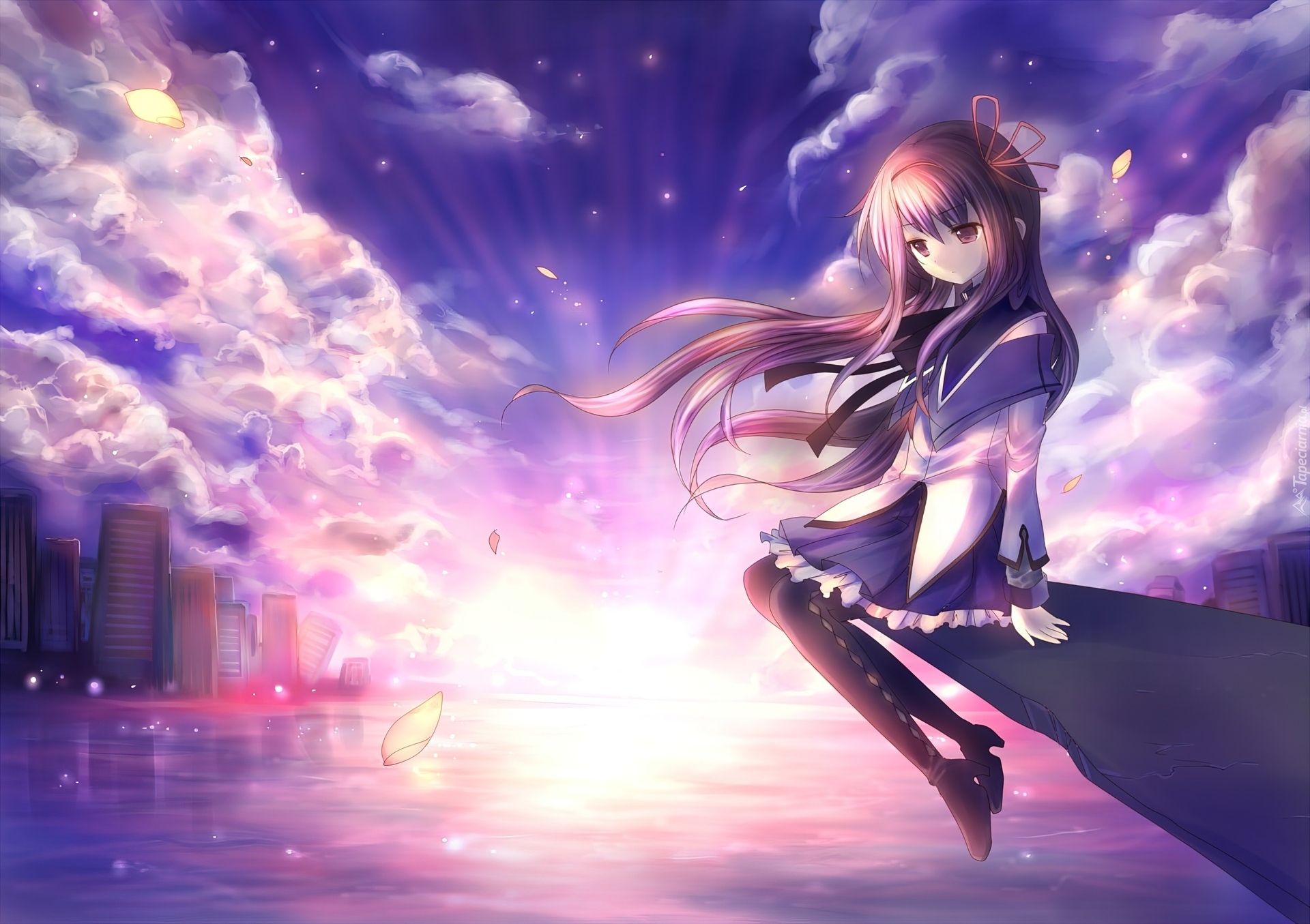 Edytor tapety: Dziewczyna, Skała, Zachód, Słońca