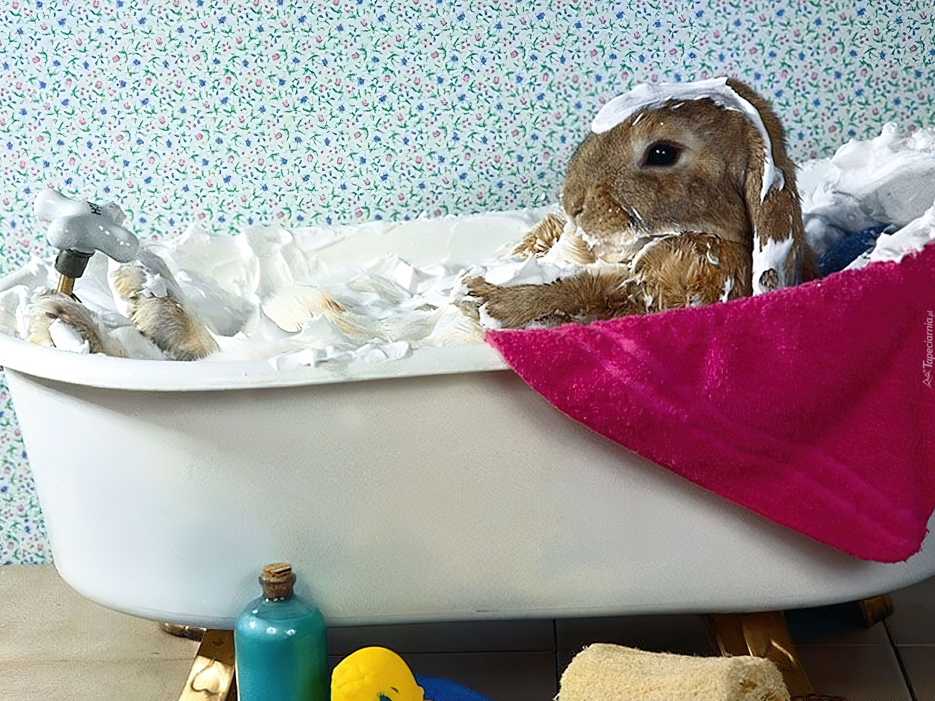 Edytor tapety: Królik, Wanna, Ręcznik