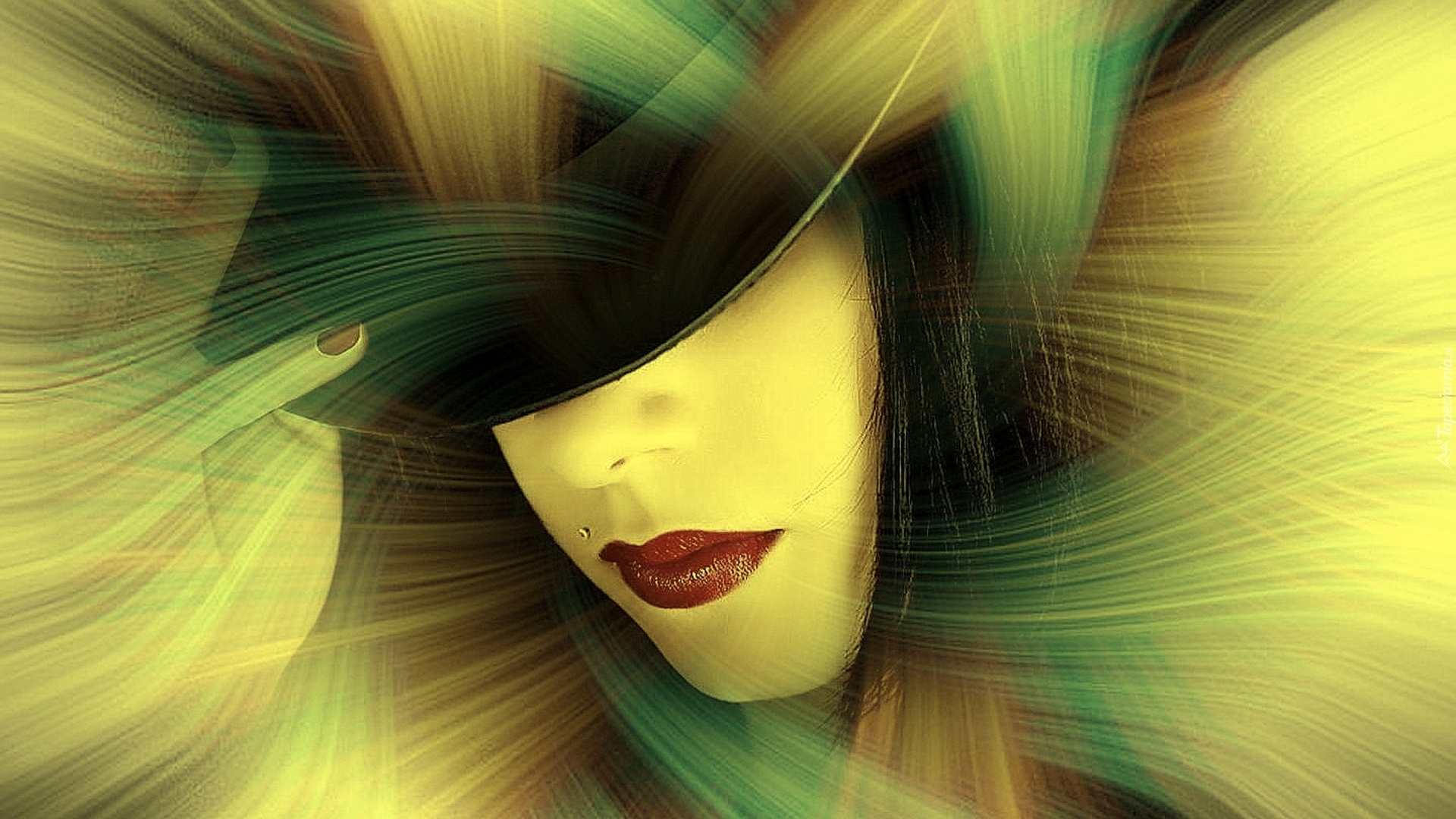 Edytor tapety: Kobieta, Kolczyk, Kapelusz, Grafika