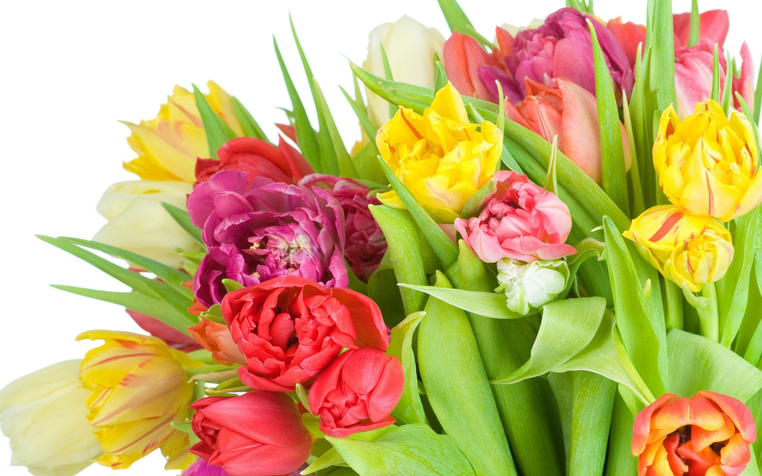 Edytor tapety: Kolorowe, Tulipany, Liście