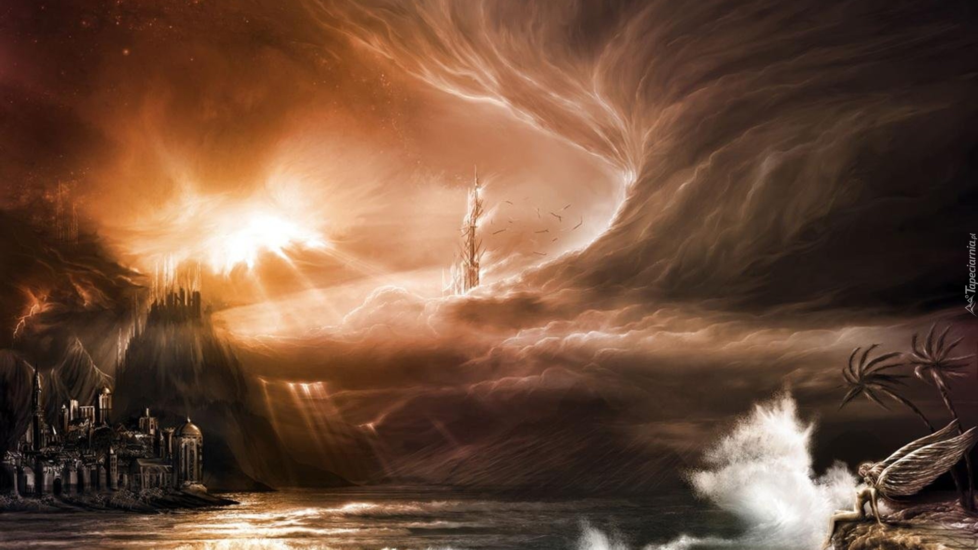 Edytor tapety: Kobieta, Palmy, Promienie, Słoneczne