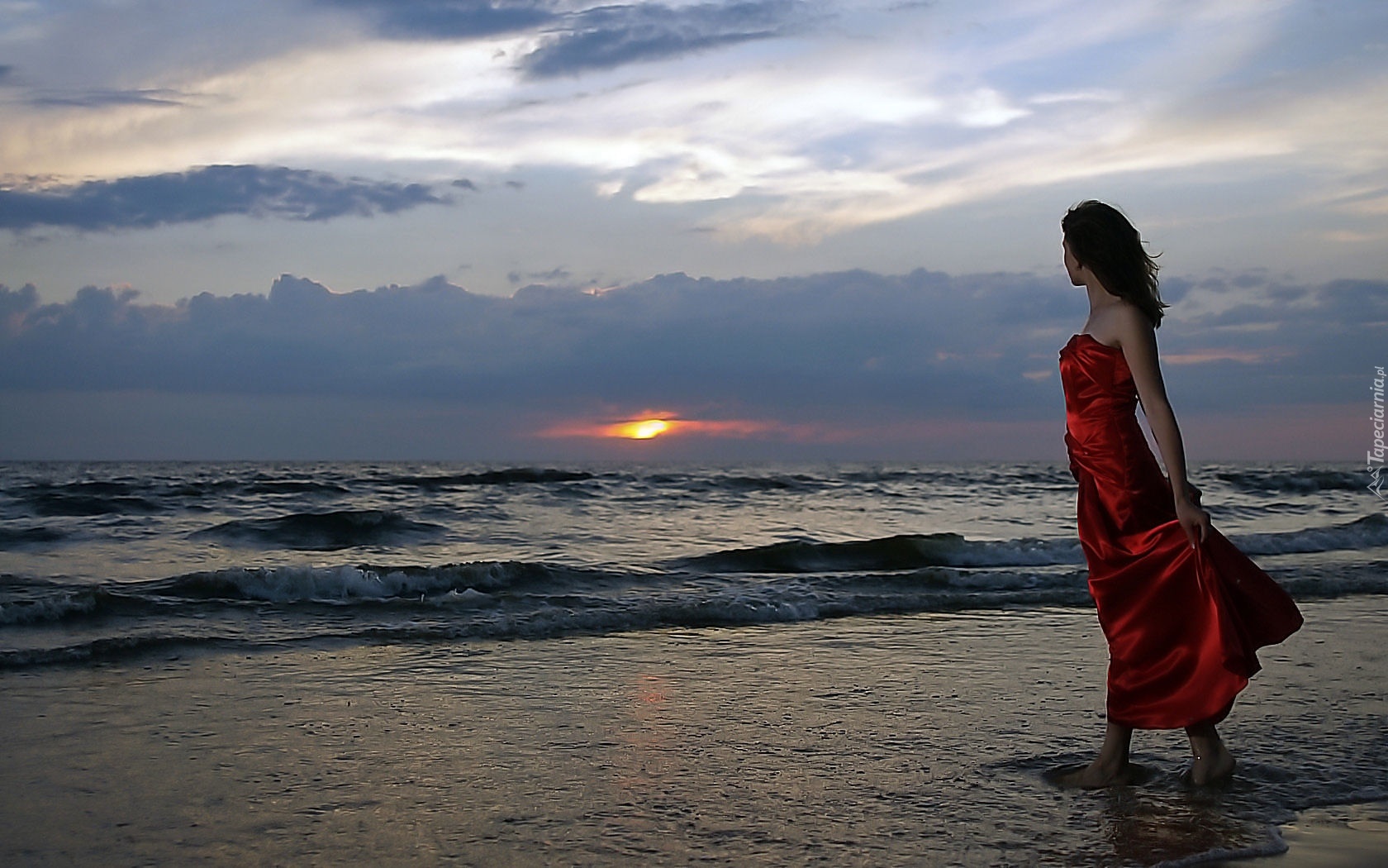 Edytor tapety: Kobieta, Czerwona, Sukienka, Plaża