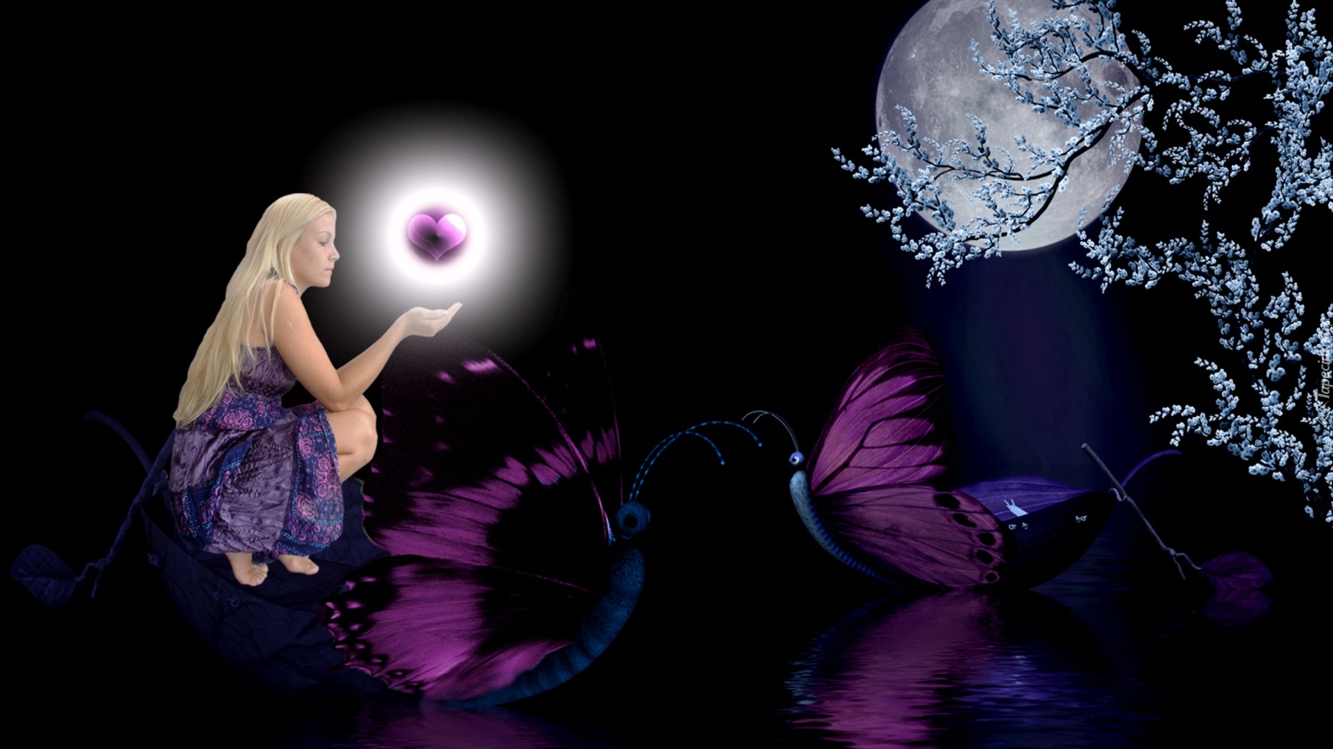 Edytor tapety: Kobieta, Motyle, Serduszko