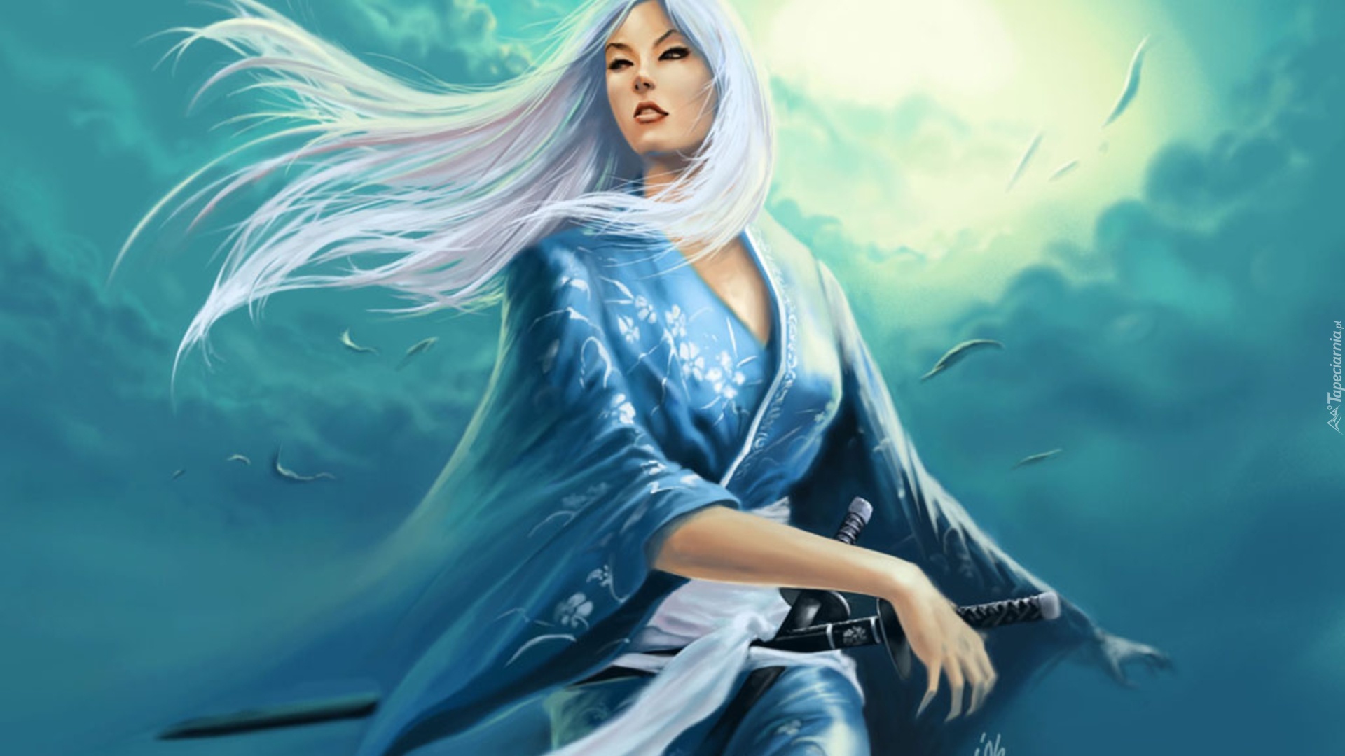 Edytor tapety: Kobieta, Kimono, Miecze, Grafika