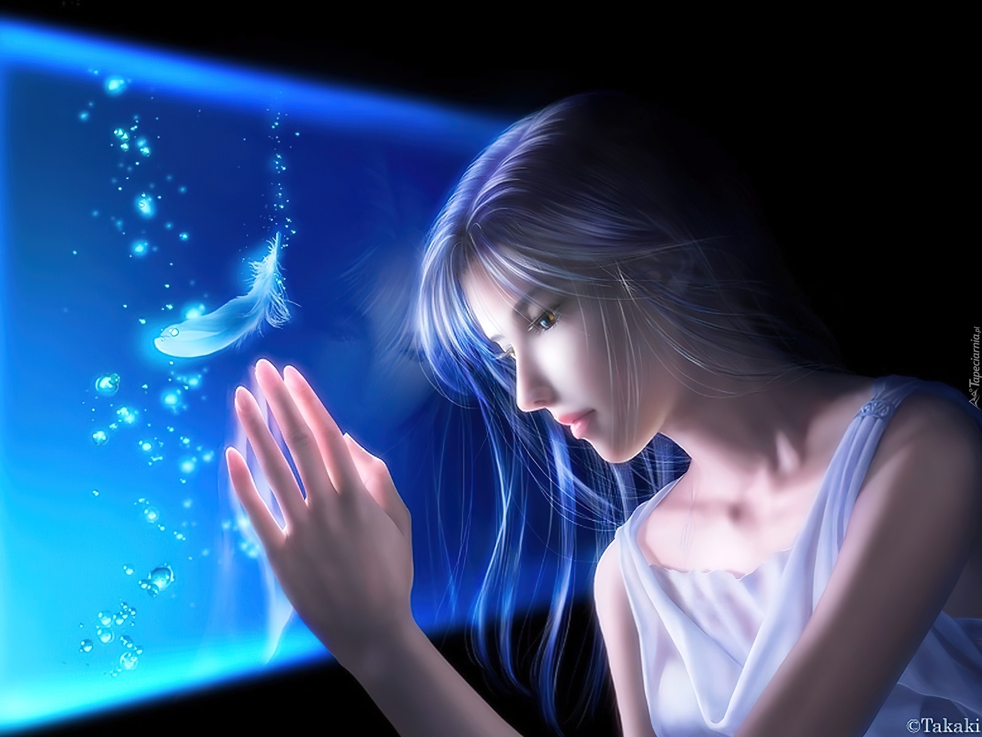 Edytor tapety: Dziewczyna, Ręka, Akwarium