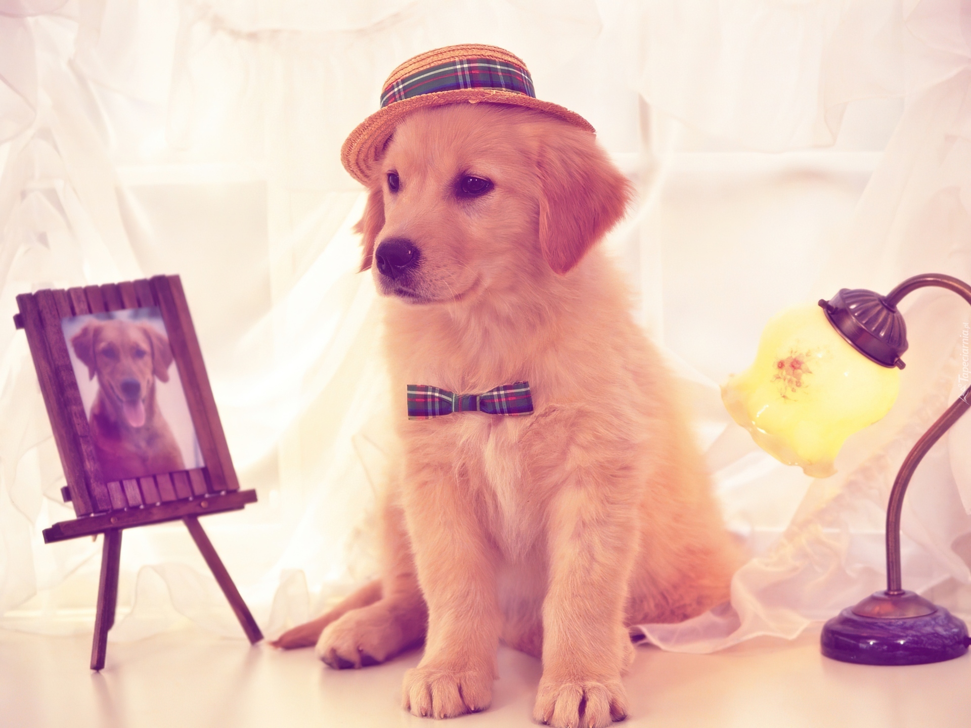 Edytor tapety: Retriever, Kapelusz, Muszka
