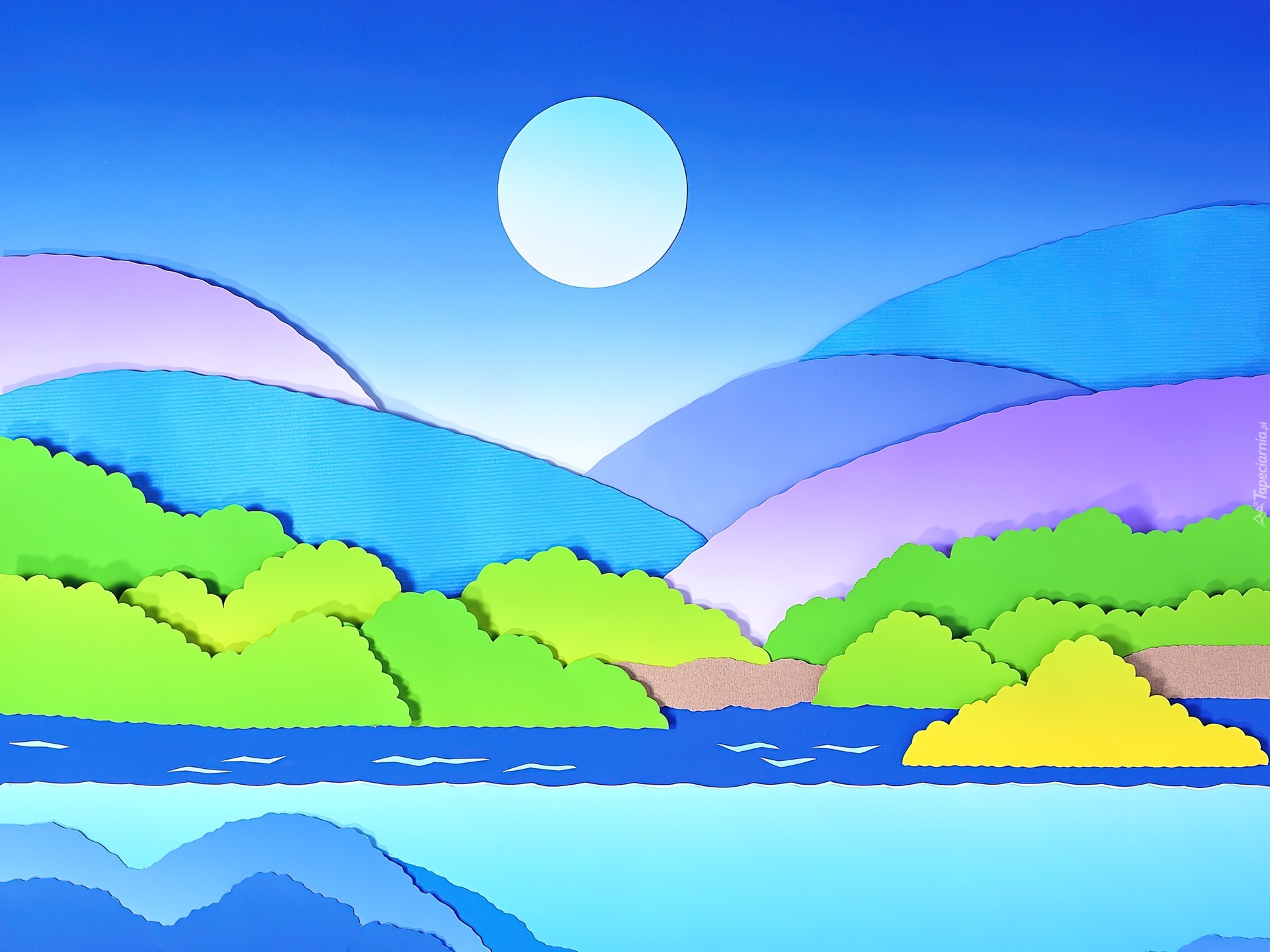 Edytor tapety: Krajobraz, Rzeka, Drzewa, Góry, Art
