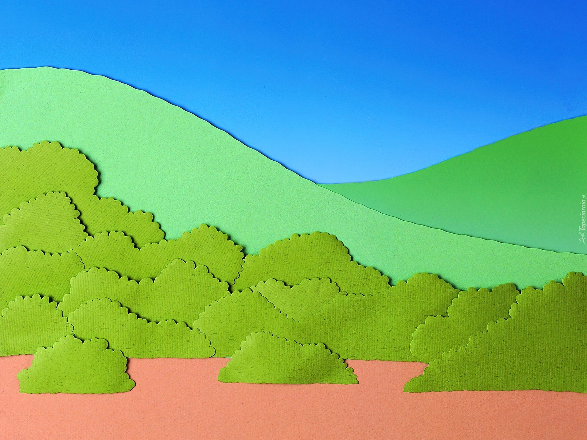 Edytor tapety: Krajobraz, Drzewa, Góry, Art, Papier