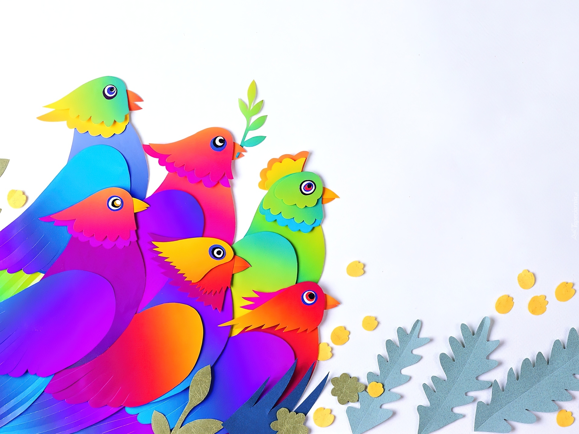 Edytor tapety: Papugi, Liście, Papier Art