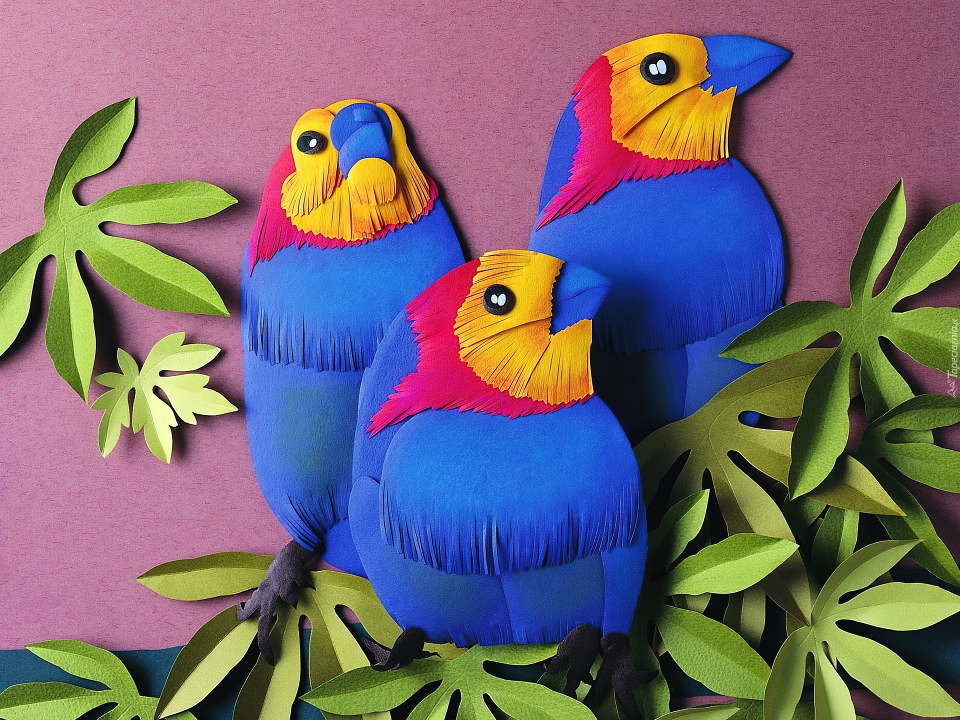 Edytor tapety: Trzy, Papugi, Liście, Wycinanki